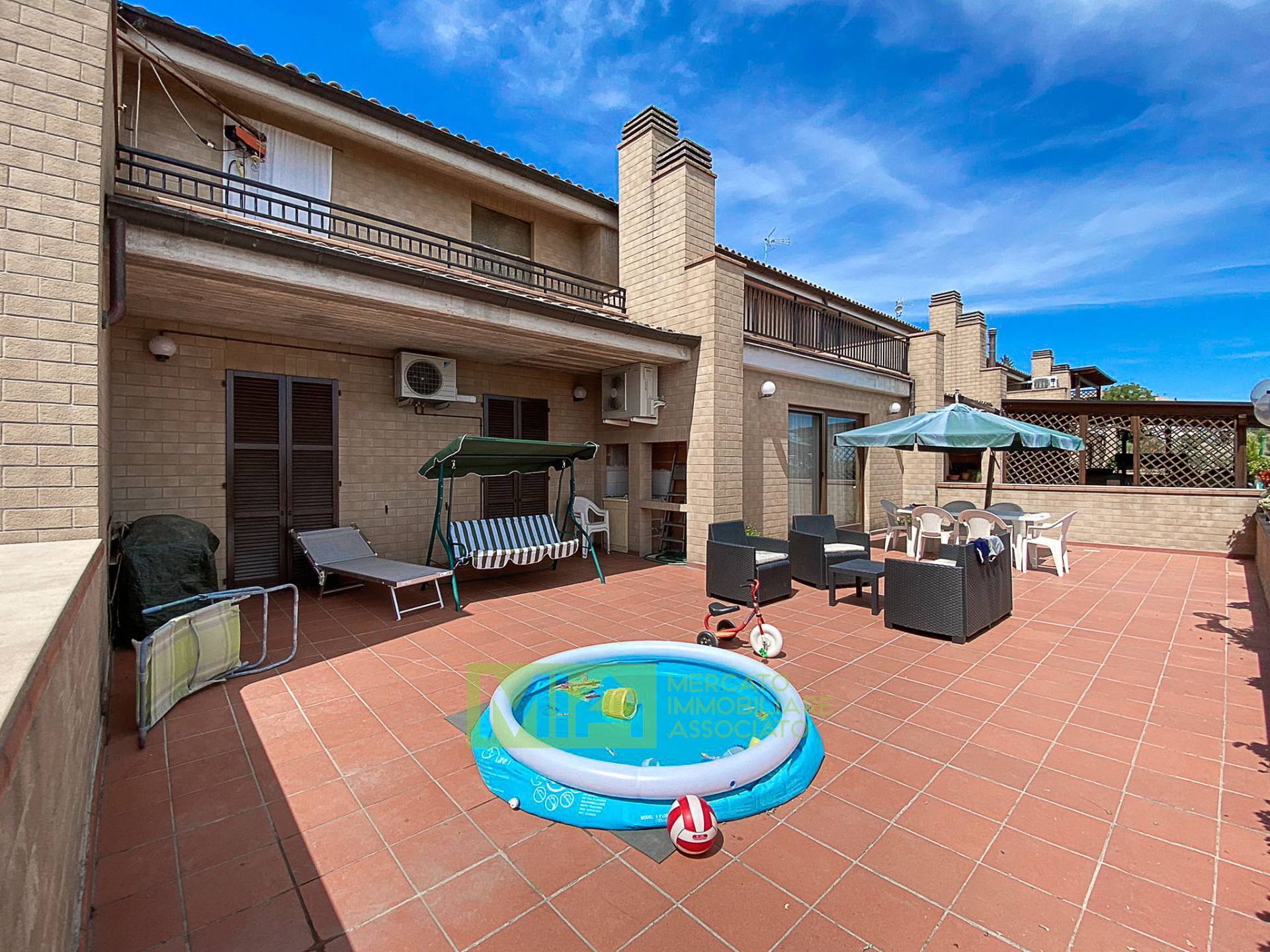 L'altra unit abitativa insediata al secondo piano ed attualmente allo stato grezzo, offre una superficie speculare di 125 metri quadrati e 45 di terrazzi.