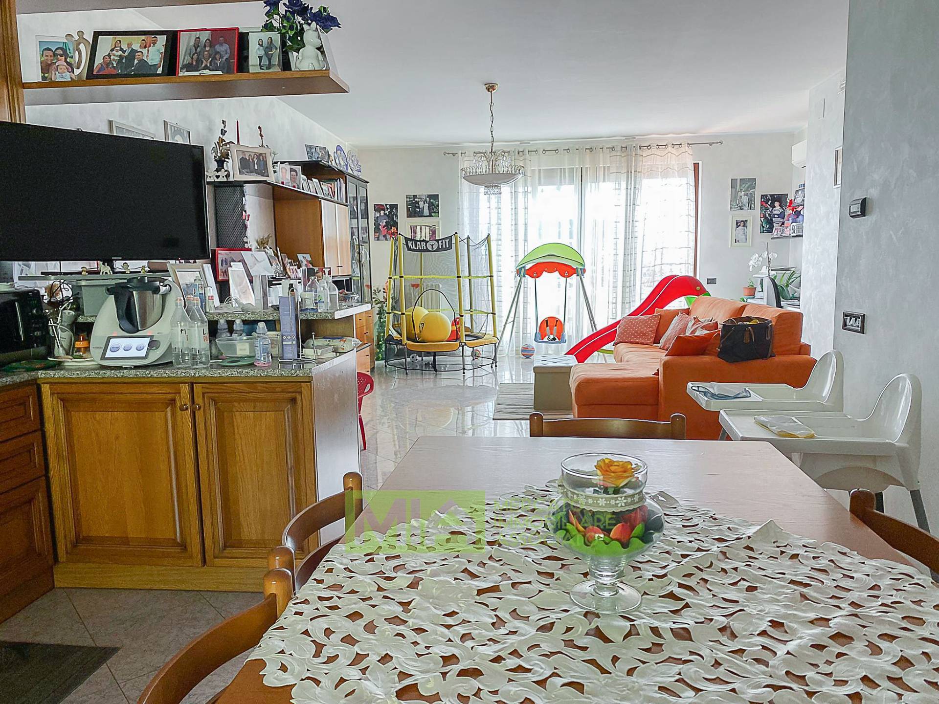 L'appartamento presenta una zona giorno con grandissimo living che concede l'accesso ai due terrazzi di cui uno con affaccio panoramico e l'altro dotato di camino e barbeque.