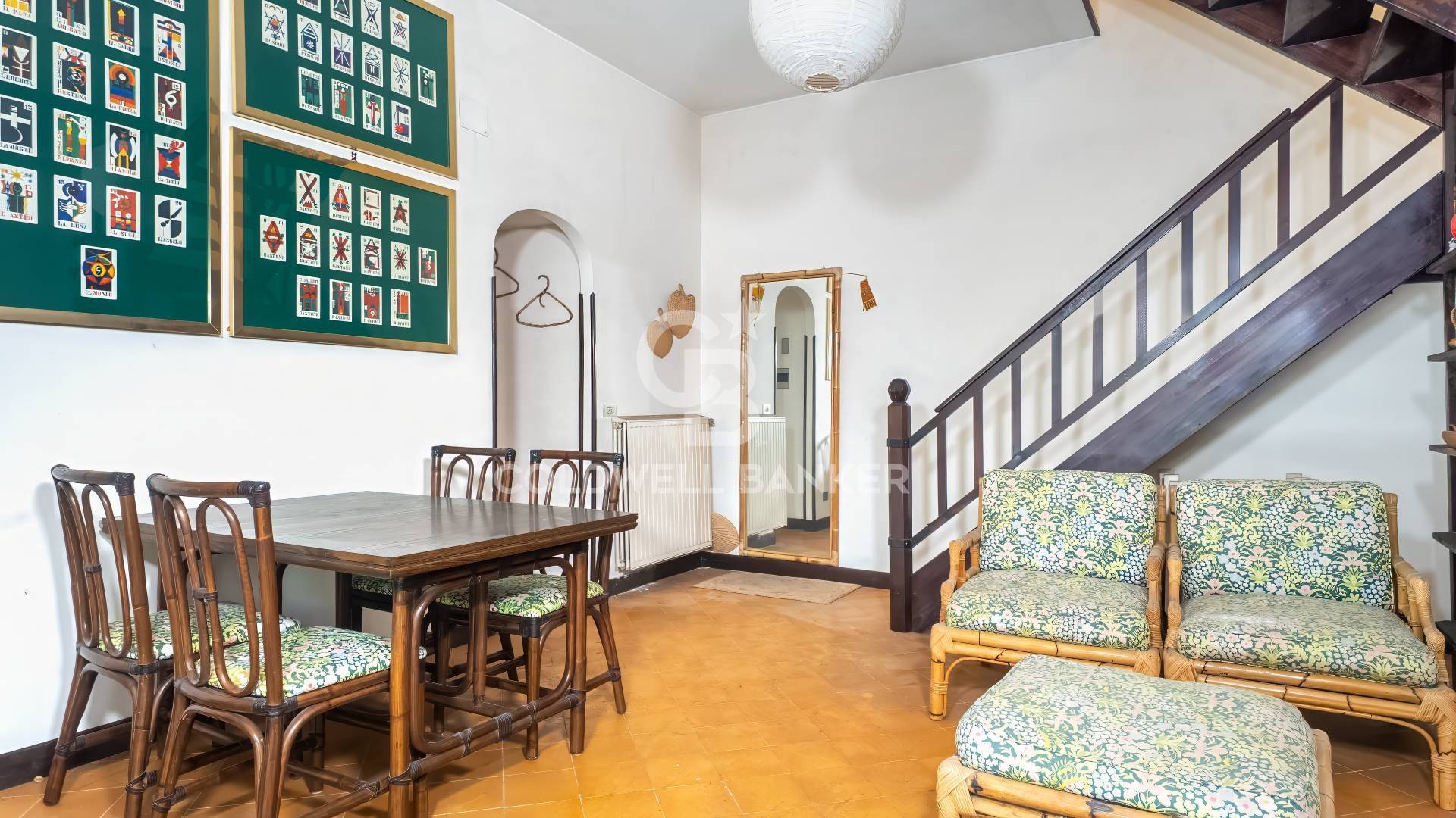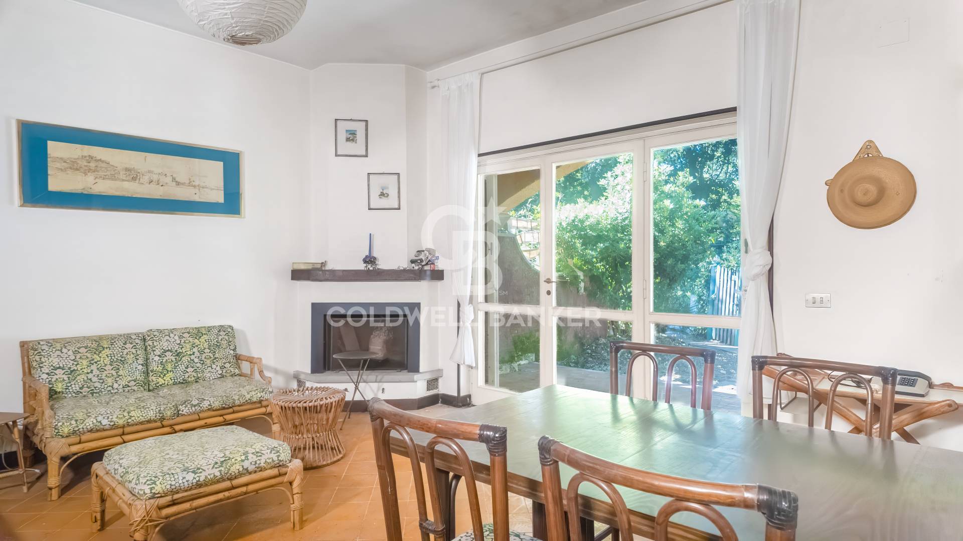 Al piano terra si trova la zona giorno con accogliente soggiorno dotato di camino e accesso al giardino privato di circa 90 mq, una cameretta, la cucina e un bagno di servizio.