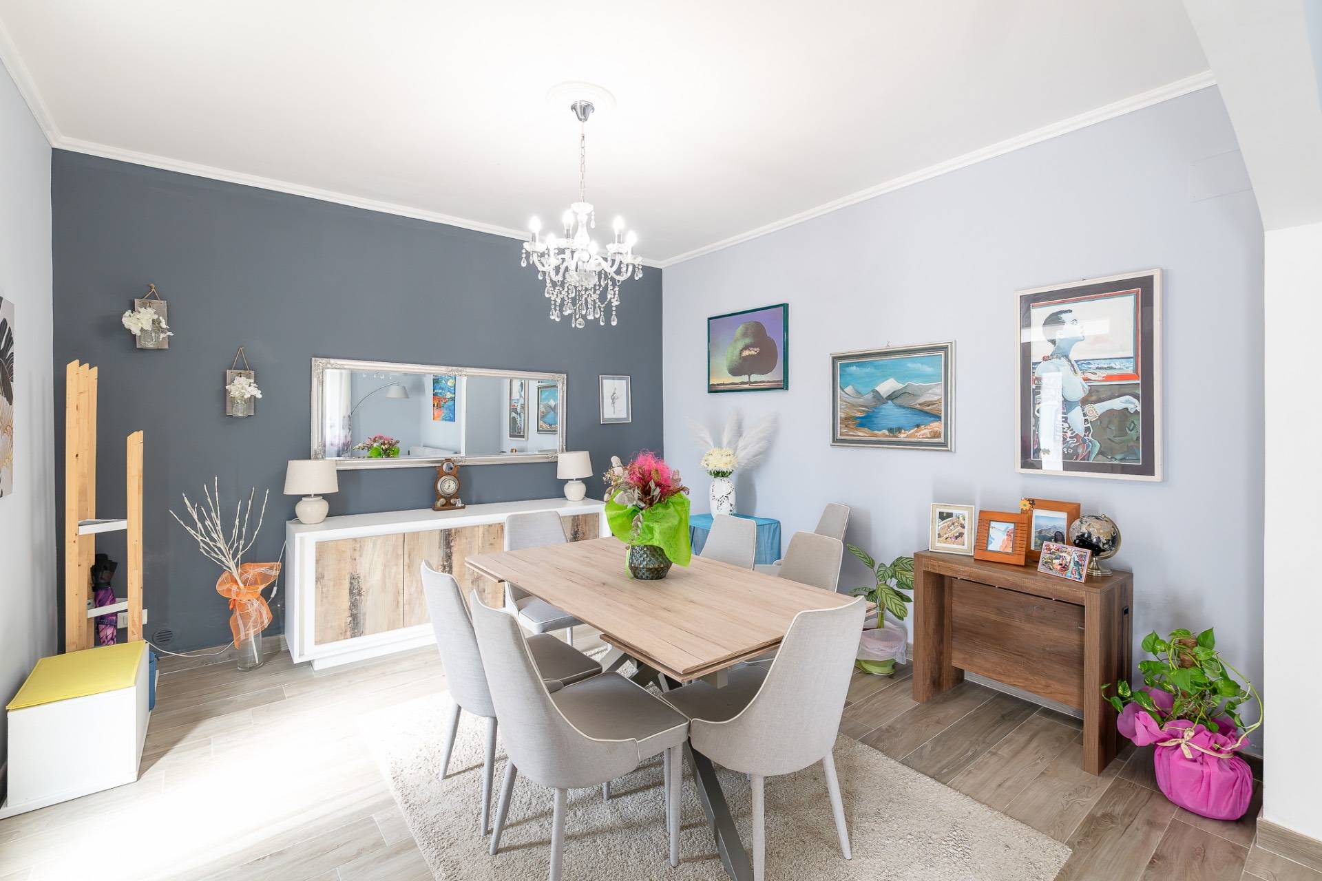 Al piano terra ti accoglie un ambiente caldo e funzionale, con un salone luminoso, una cucina abitabile completa di tinello con camino, una camera da letto matrimoniale e un bagno.