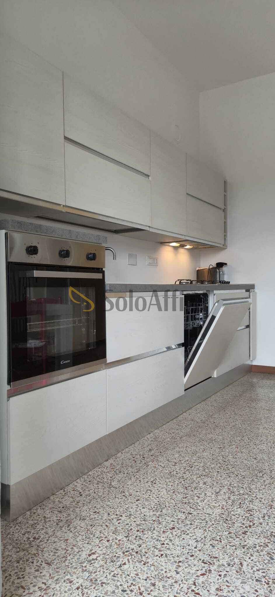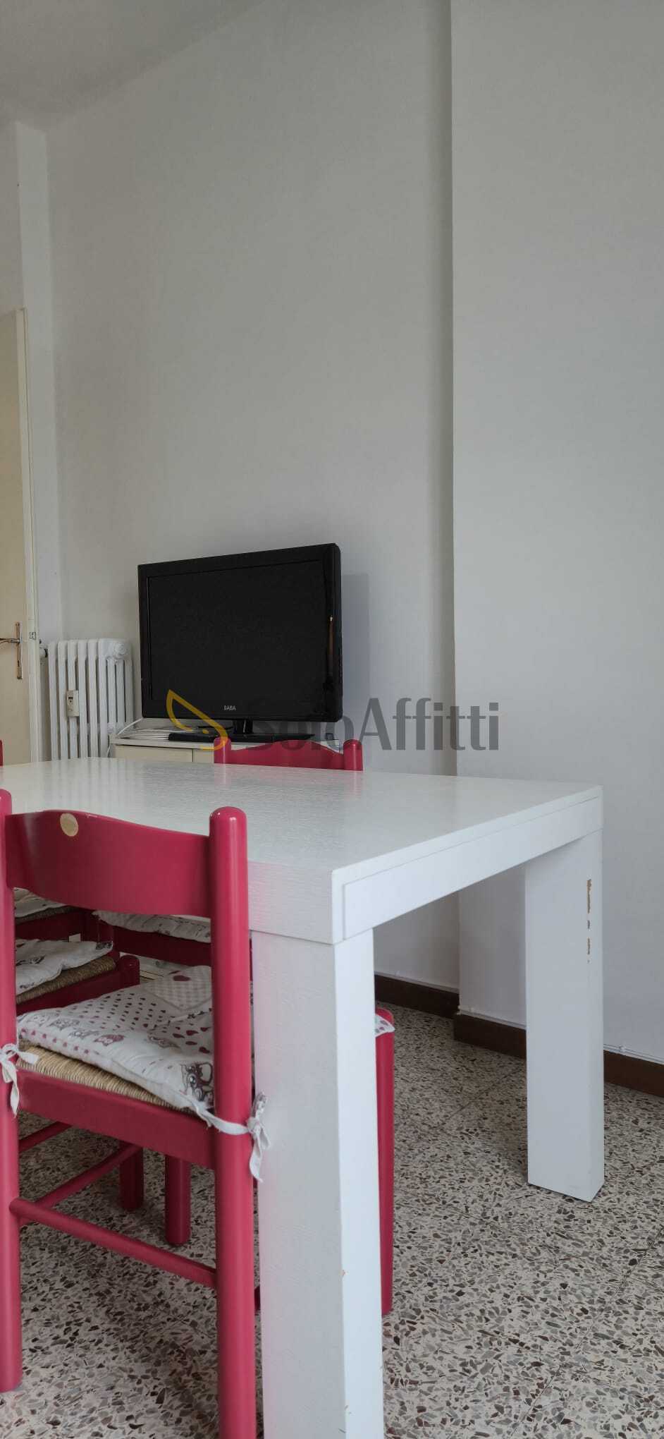 Internamente l'immobile, che viene affittato esclusivamente con contratto di tipo transitorio, si compone di: ingresso, cucina abitabile (completa di elettrodomestici quali frigorifero, forno e lavastoviglie), disimpegno adibito a salottino, camera matrimoniale, servizio con doccia, finestra e lavatrice, 2 balconi e cantina.