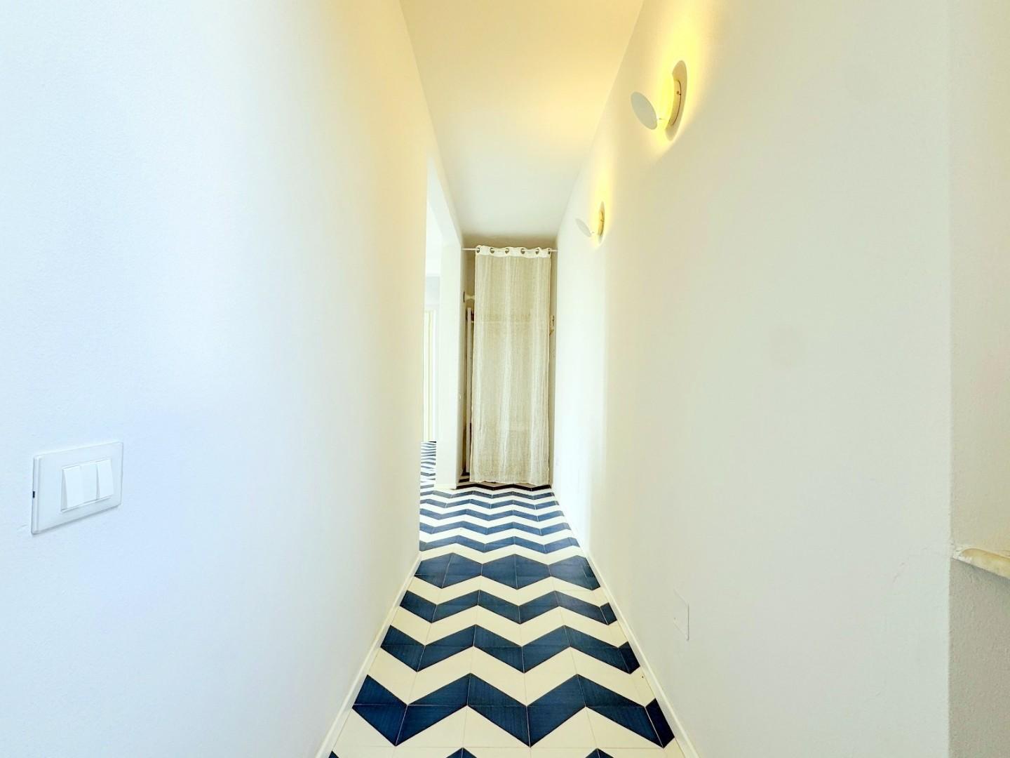 Percorrendo il corridoio si raggiunge la prima camera da letto (2 pax) ed il primo bagno con la doccia.