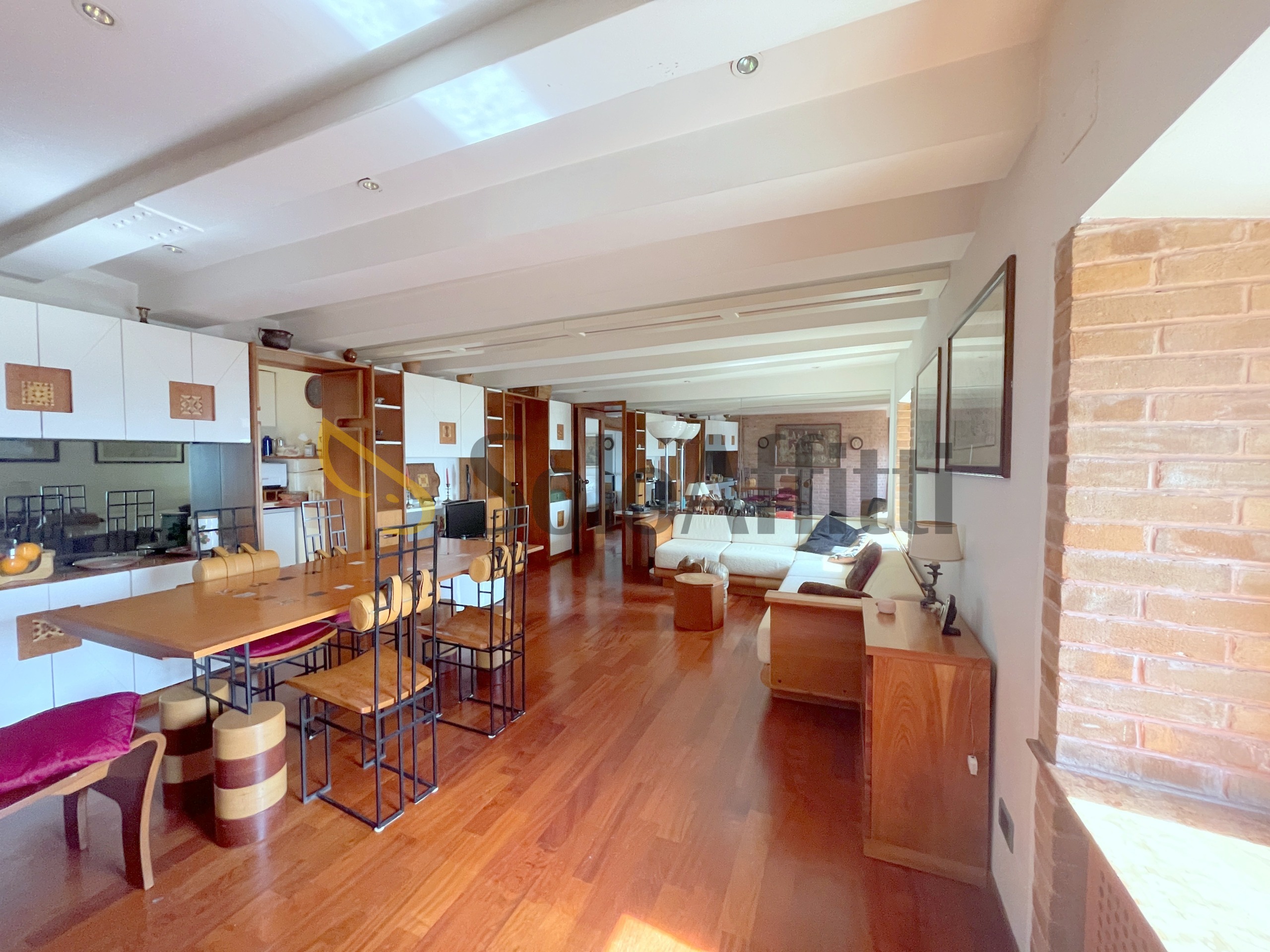 L'abitazione di oltre 100 mq catastali è composta da ingresso, ampio soggiorno, cucinino, camera matrimoniale, cameretta, studio e doppi servizi.