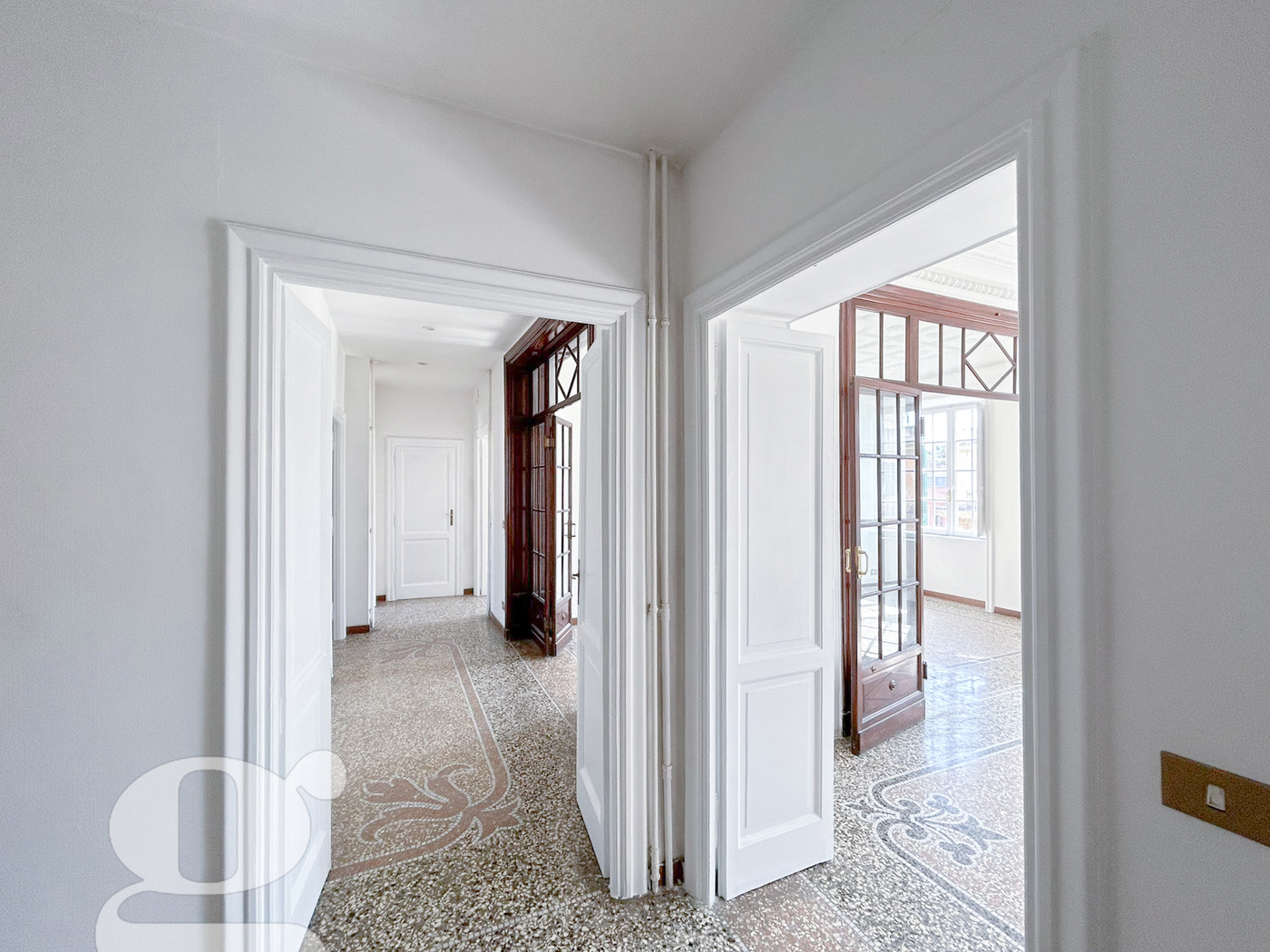 La dimora sita al sesto piano di un palazzo Umbertino dei primi del '900 si sviluppa per una superficie di circa 170mq ed cosi composta; Ingresso con disimpegno, salone doppio e sala da pranzo, tre camere da letto, stanza studio, doppi servizi, cucina e ripostiglio.