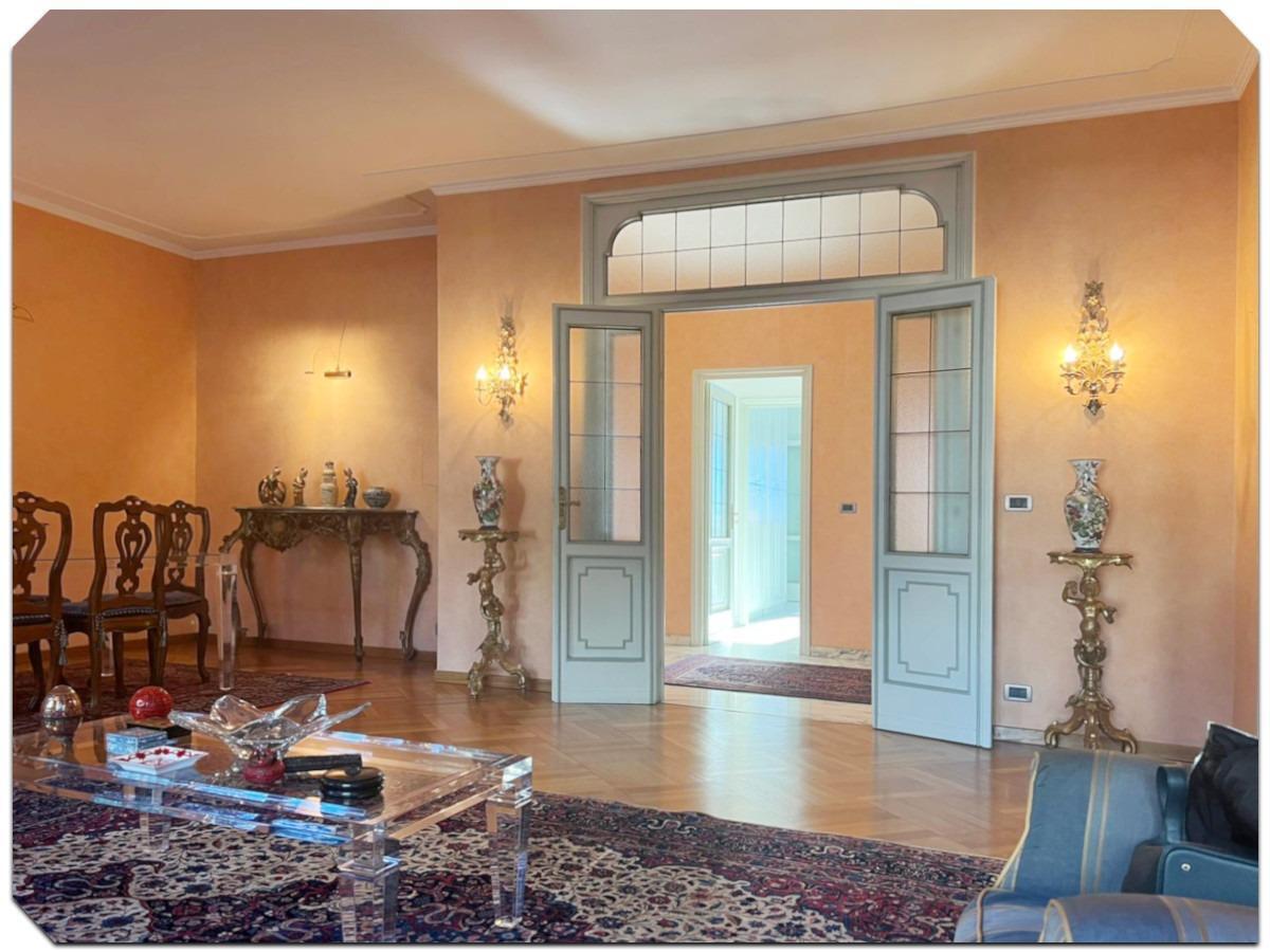 l'appartamento, arredato, e' cosi' composto :ingresso, ampio salone, cicona abitabile attrezzata, camera da letto matrimoniale , altra cameretta /studiolo, doppi servizi ( vasca e doccia), 2 ampi balconi, lavanderia, altro locale dedicato a personale di servizio con ingresso dedicato.