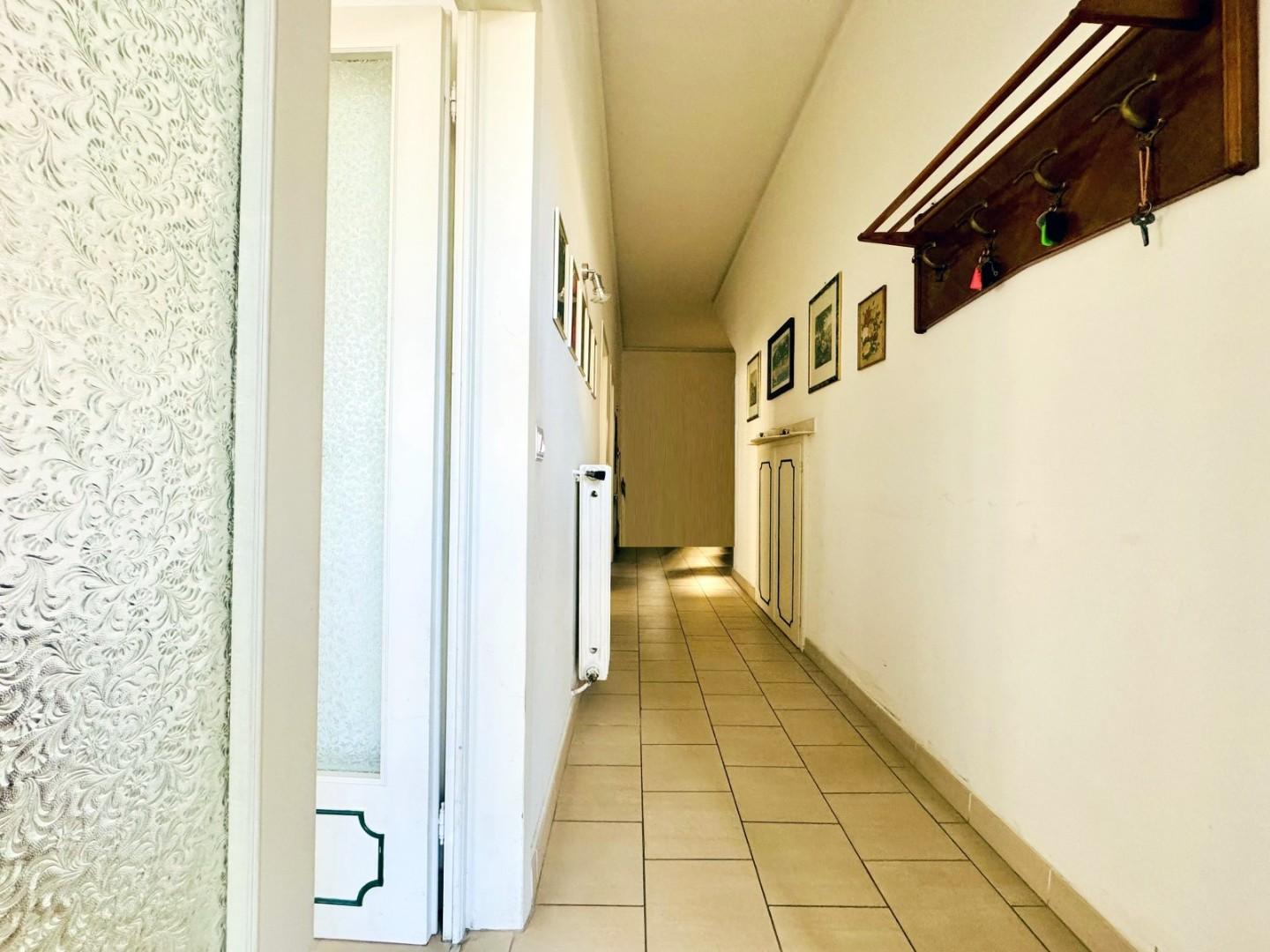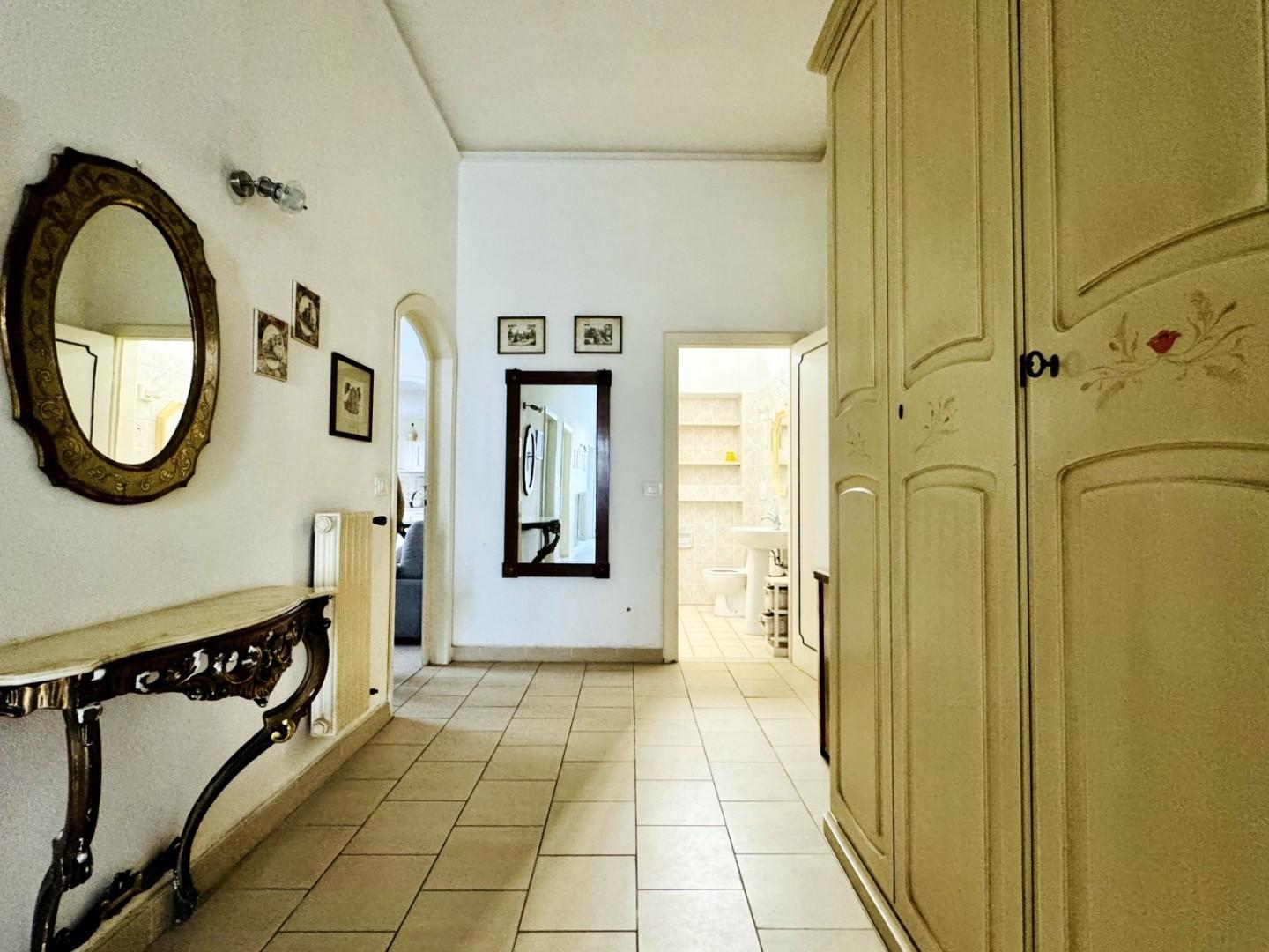 La zona giorno, posta nelle immediate vicinanze, è composta da un generoso soggiorno suddiviso tinello e zona relax.