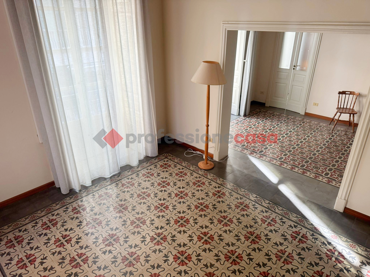 Limmobile, molto luminoso e con caratteristiche uniche come il pavimento in cementine, ha ingresso su una saletta, corridoio che disimpegna gli ambienti, soggiorno con annessa sala da pranzo, studio, camera da letto, cucina, bagno, ripostiglio e sei balconi.