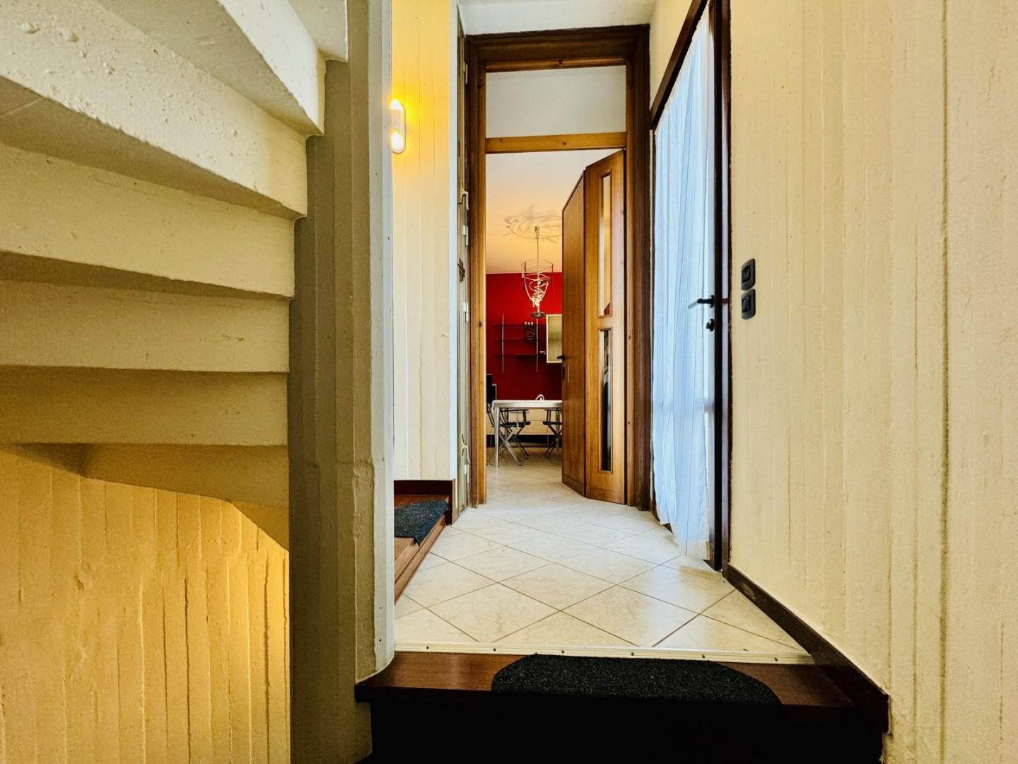 L'ingresso alla casa avviene a piano terreno ed attraverso la scala interna si giunge al piano primo.