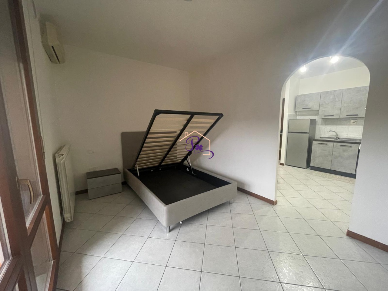 All'interno è presente uno spazio cucina separato dalla zona letto, con un comodo disimpegno con armadiatura che da accesso al bagno finestrato recentemente rifatto a nuovo.