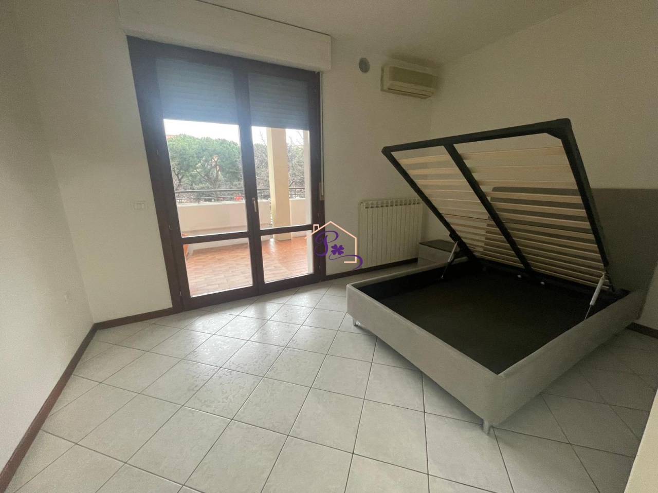 La particolarità dell'appartamento è che gode di un ampio terrazzo loggiato abitabile che consente di ampliare la superficie abitabile nei mesi primaverili ed estivi.