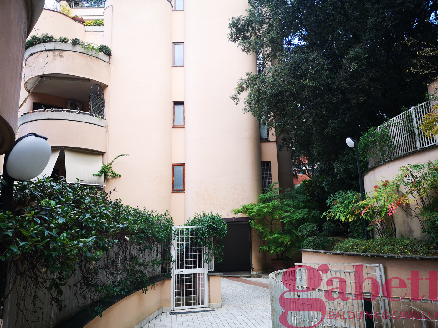 GabettiCamilluccia Via Cavalese in comprensorio con servizio di portineria Attico con terrazza sovrastante e vista panoramica composto da grande ambiente con un riservato angolo cottura, zona living, zona notte, bagno con doccia, 2 balconi ed accesso alla terrazza sovrastante.