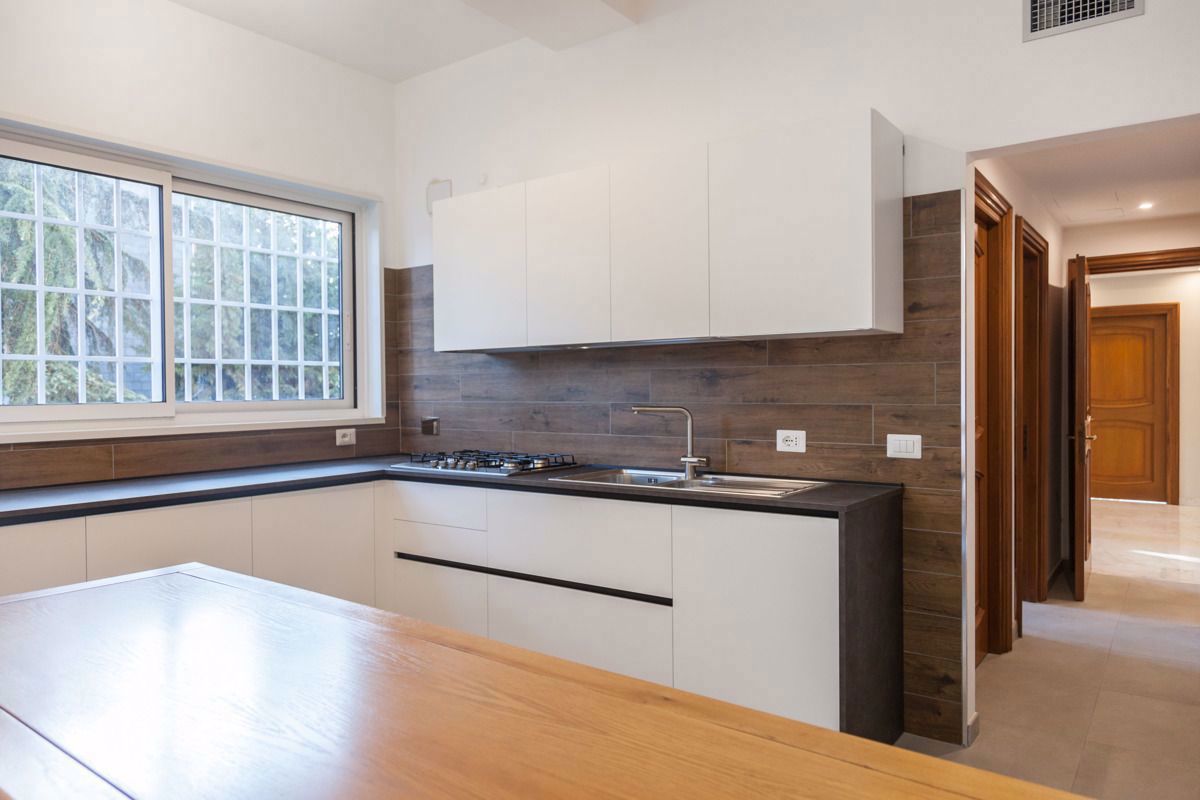 L'abitazione stata oggetto di una recente e totale ristrutturazione che ha previsto l'impiego di materiali di pregio e la posa di pavimentazioni in marmo bianco nella zona giorno e parquet a spina di pesce nella zona notte, grs porcellanato nei servizi, infissi in PVC con doppi vetri, porta blindata, serrande domotizzate e grate di sicurezza, e rifinito con complementi d'arredo di design.
