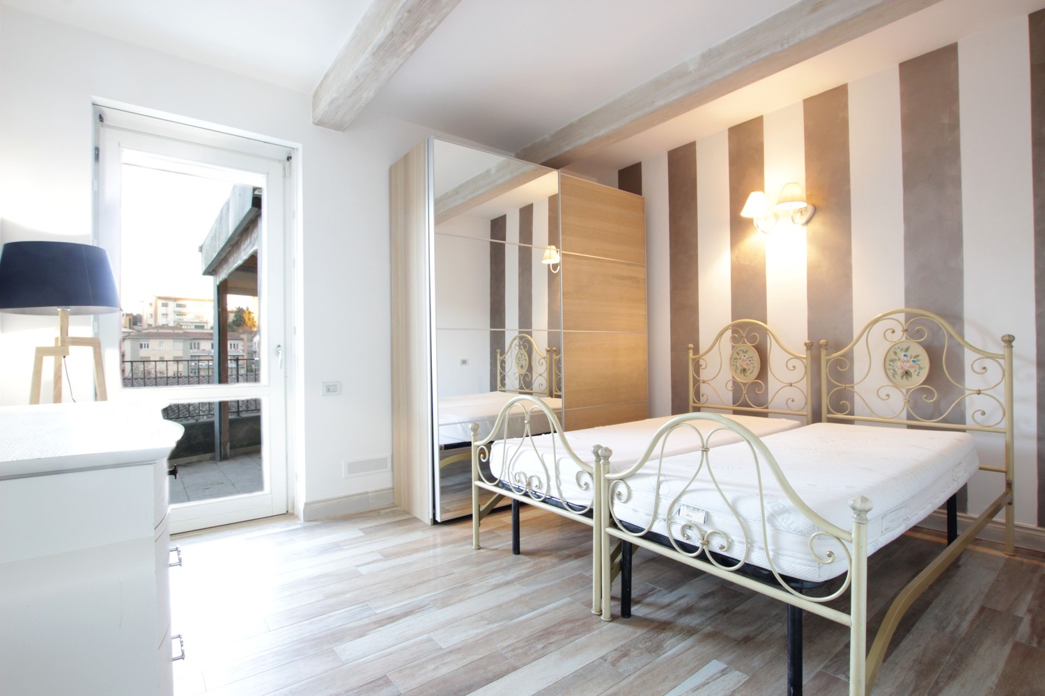 Diviso tra soggiorno con angolo cottura, due camere matrimoniali, due bagni, ripostiglio e cantina.