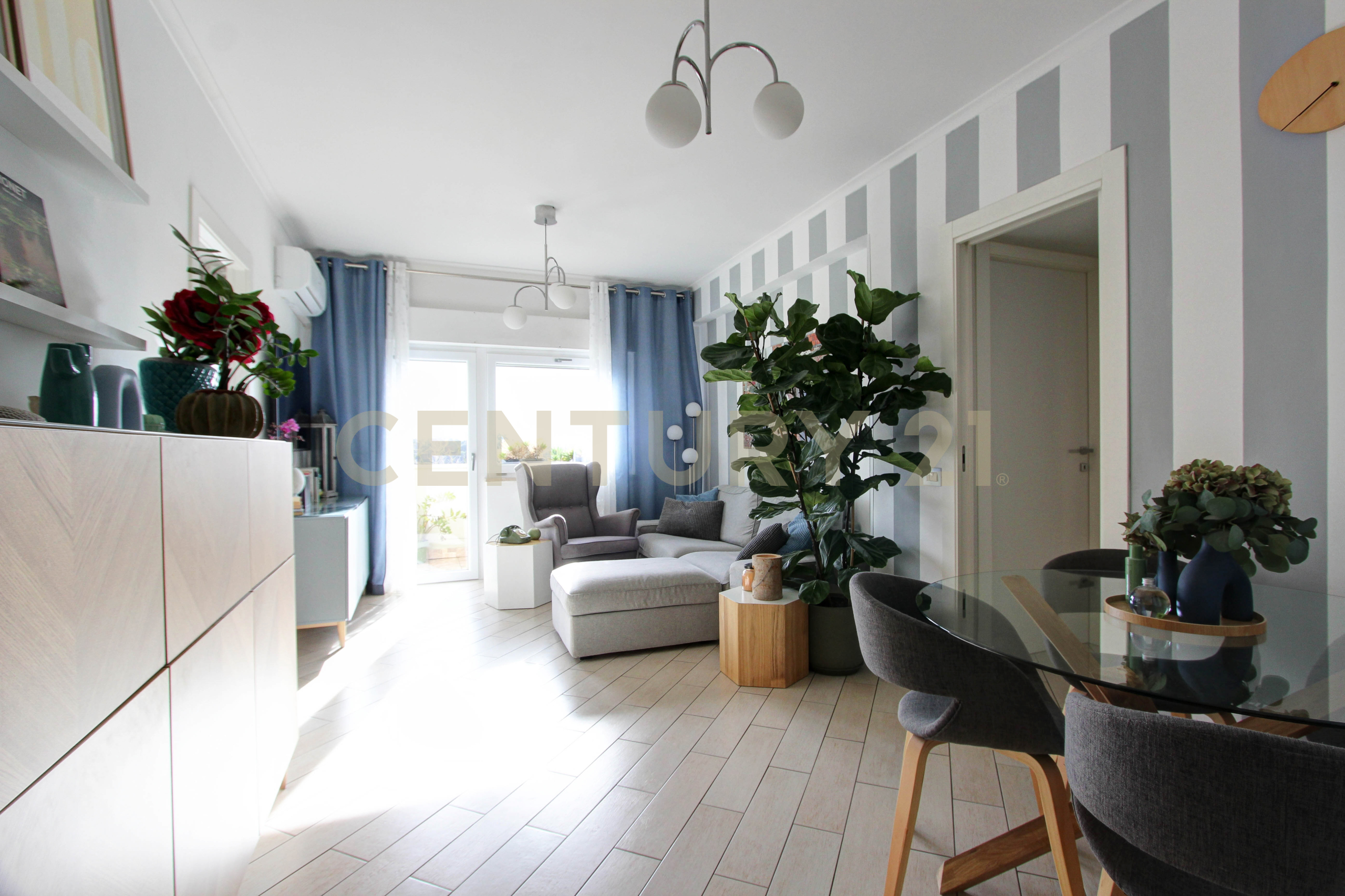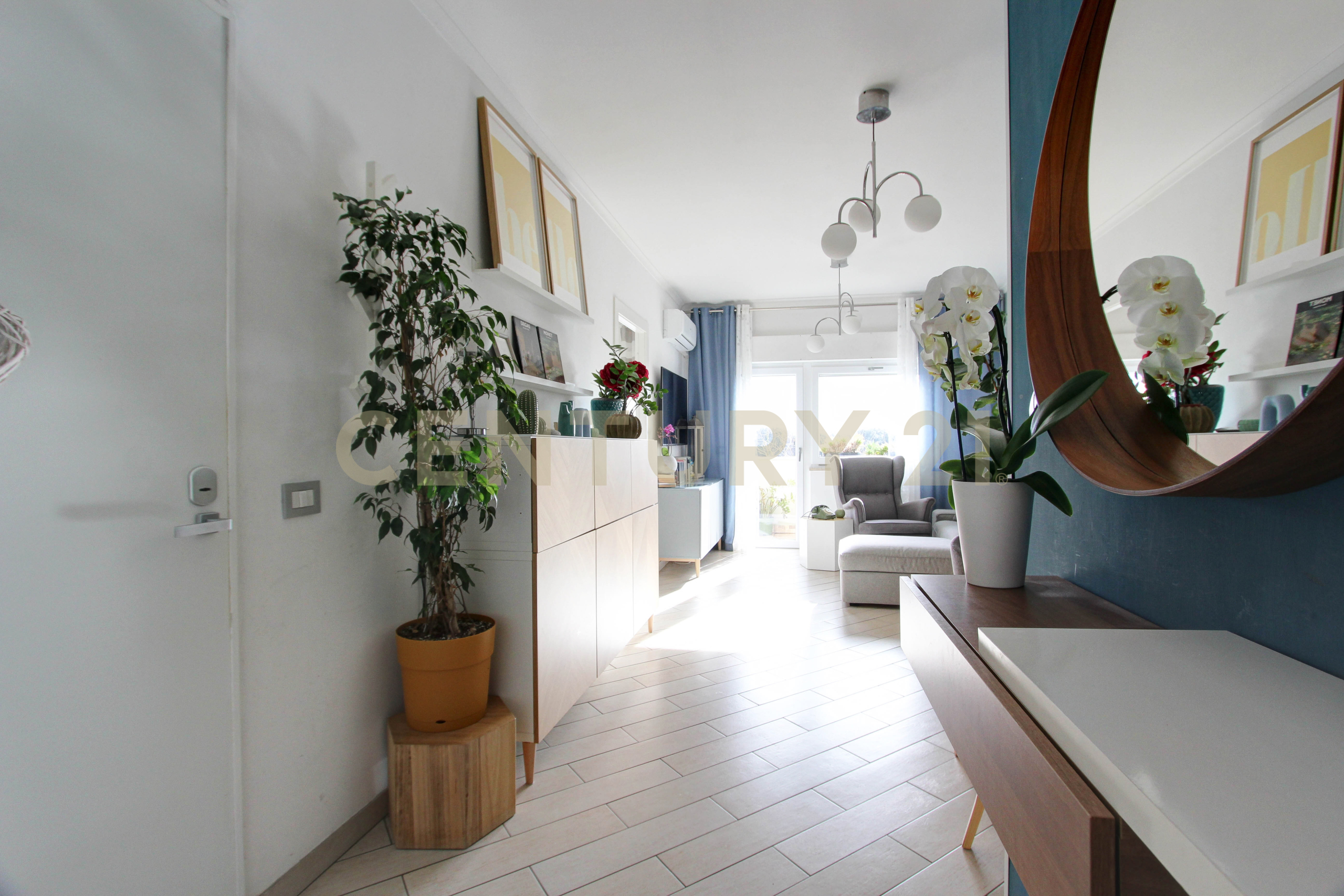 Limmobile, di circa 101 mq catastali, si sviluppa con una zona living ampia e armonica in cui la luce naturale entra generosa durante tutto larco della giornata, una cucina abitabile moderna e funzionale, tre camere (matrimoniale, seconda camera e studio/terza stanza), due bagni e un comodo locale lavanderia dedicato; la distribuzione è razionale, con zona giorno e zona notte ben separate, ideale per famiglie o per chi lavora da casa. I due balconi, per complessivi circa 10 mq, offrono affacci panoramici e liberi che garantiscono privacy, ariosità e una piacevole sensazione di respiro.