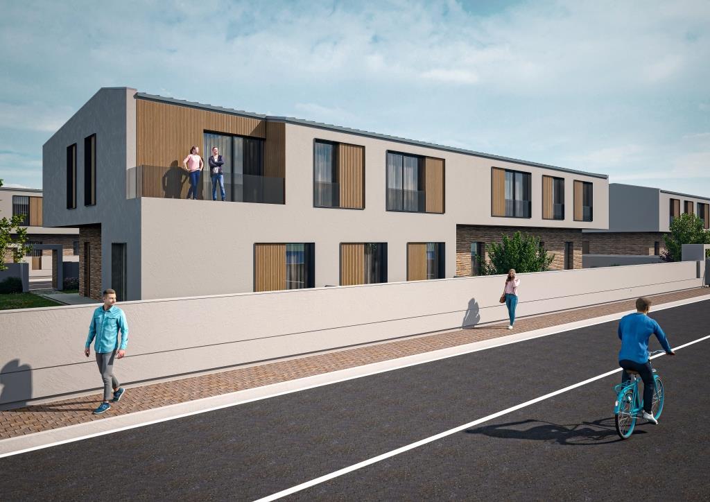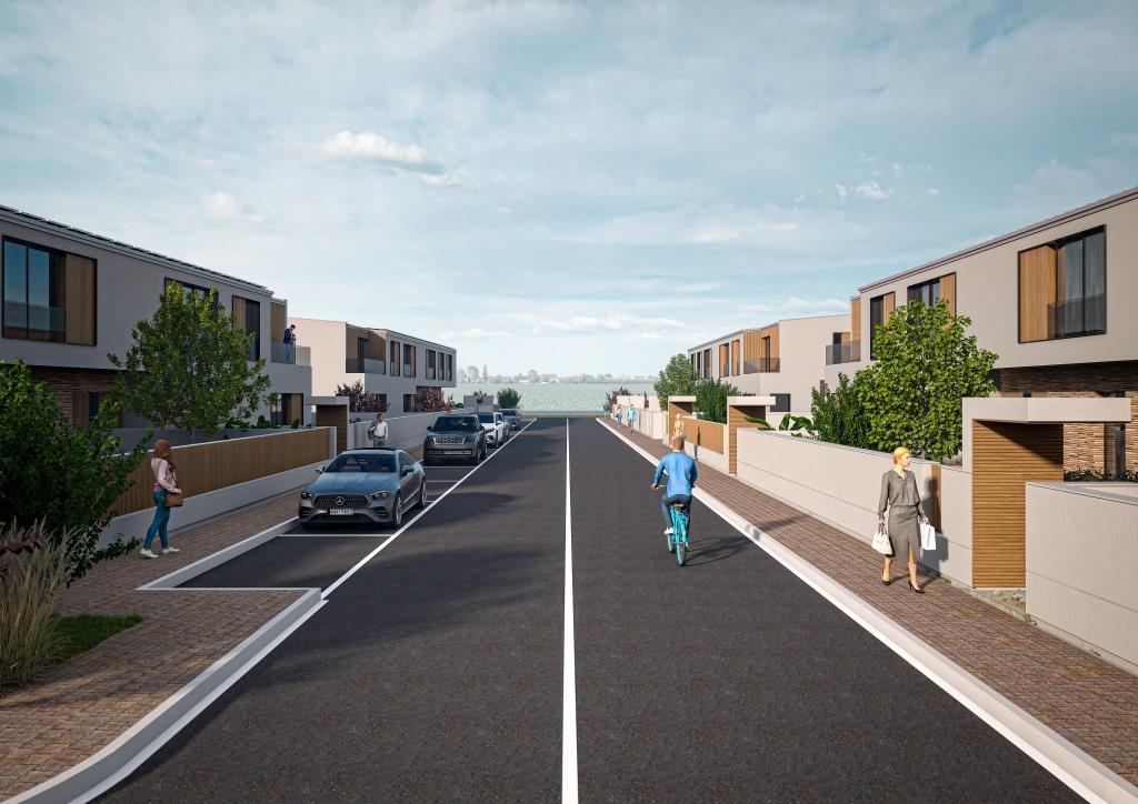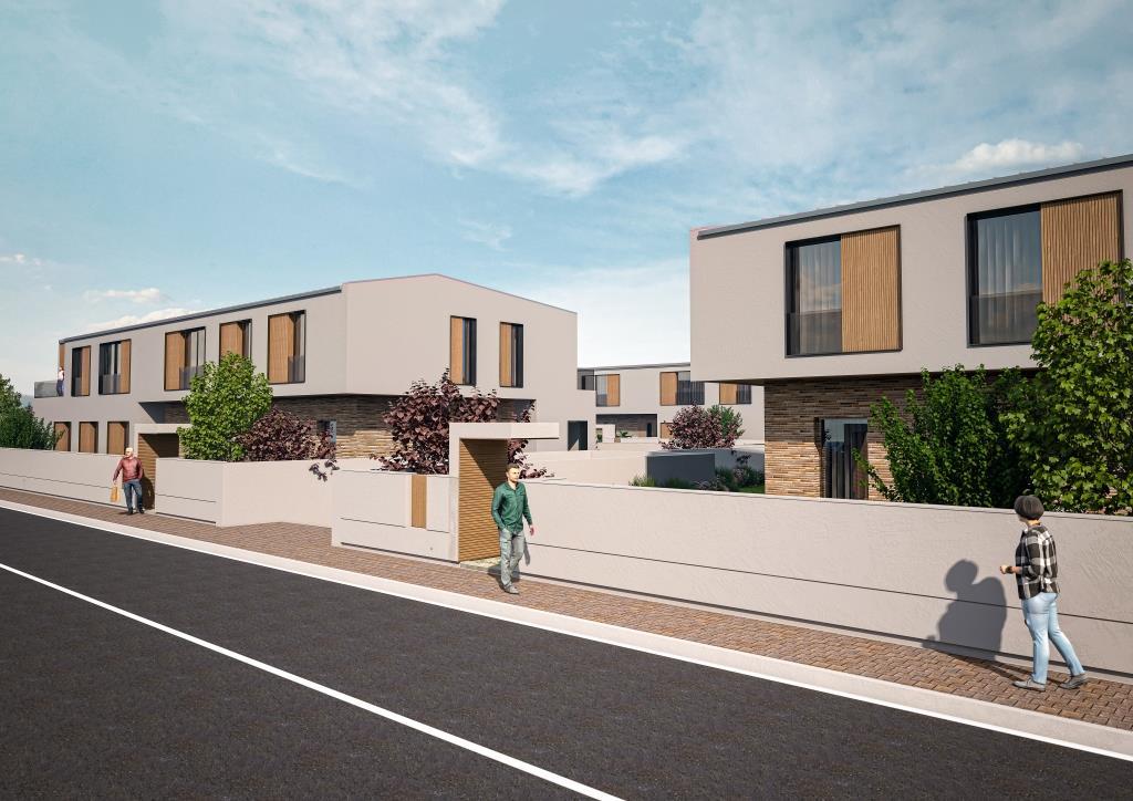 Il complesso prevede la costruzione di 4 palazzine di due piani fuori terra, ognuna composta da 8 unità immobiliari dove ogni appartamento avrà un ingresso indipendente e posto auto; l'esposizione del lotto è perfetta, rispondendo sui versanti sud-est-ovest, con vista panoramica sui Monti Sibillini e sui Monti Gemelli.