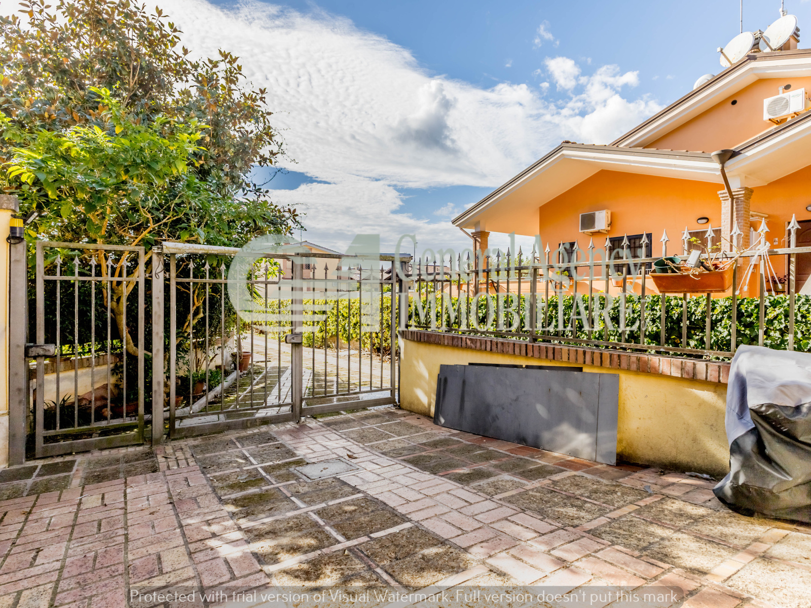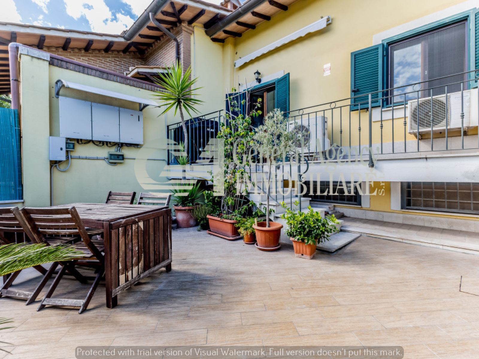 Porzione di villa a schiera in vendita di 180 mq ca. su 3 livelli sita a Roma, composta da: 1° livello (piano terra): ingresso, salone singolo, cucina semiabitabile (tavola per 2 persone), camera matrimoniale, cameretta, bagno, portico, giardino di 80 mq ca., ristrutturato/restaurato; 2° livello (seminterrato): ; ingresso, salone singolo, cucina semiabitabile (tavola per 2 persone), bagno, sala hobby, lavanderia, camino, ristrutturato/restaurato; 3° livello (piano mansardato): camera matrimoniale, bagno, ristrutturato/restaurato.