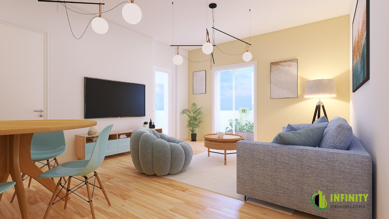 \nAl momento, l'appartamento della metratura indicata, è disponibile al 1°,2° e 3° piano della costruzione.\nMolto luminoso, presenta ampi balconi e/o finestre in ogni ambiente, oltre ad una comoda veranda di 23 mq accessibile sia dalla zona giorno che dalla camera da letto.\nÈ ideale per chi cerca una soluzione nuova da poter personalizzare sin da subito nei minimi dettagli.\nCompleta la soluzione, con accesso interno al palazzo, un comodo garage, da abbinare, con un costo aggiuntivo, all'appartamento.\nLa posizione strategica consente di avere riservatezza e al contempo la possibilità di accedere immediatamente ad una serie di servizi presenti nella zona. - Maggiori Dettagli: Climatizzato, Porta blindata, Cucina Abitabile, Sistema di allarme, Insonorizzazione Contatta l'inserzionista