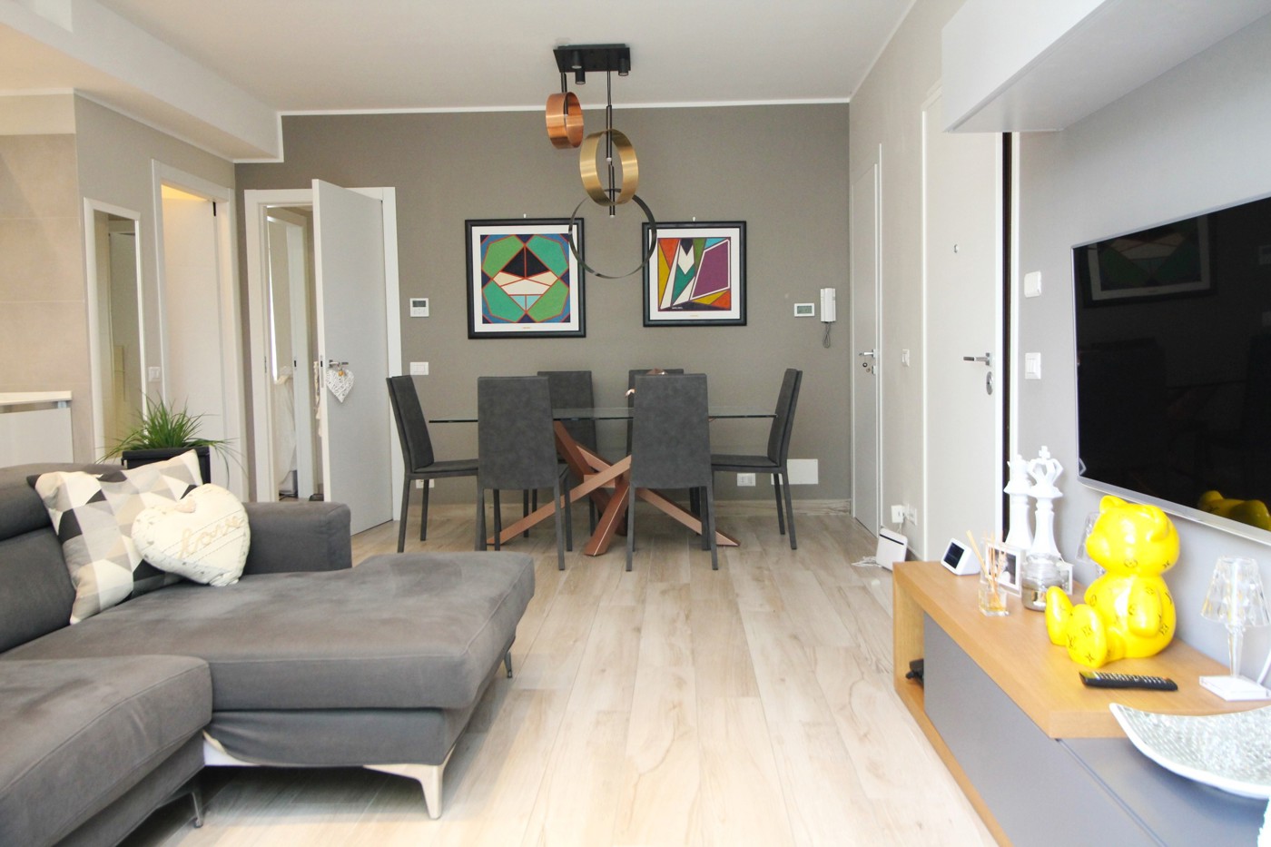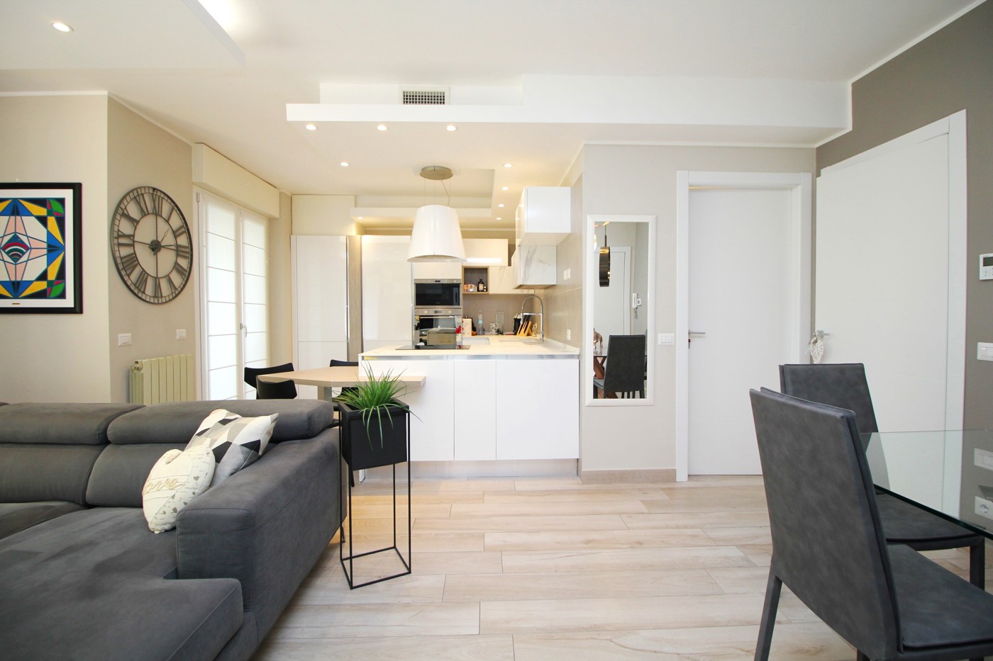 La pavimentazione in gres, gli infissi sono in PVC doppio vetro, porta blindata, impianto di condizionamento canalizzato inverter.