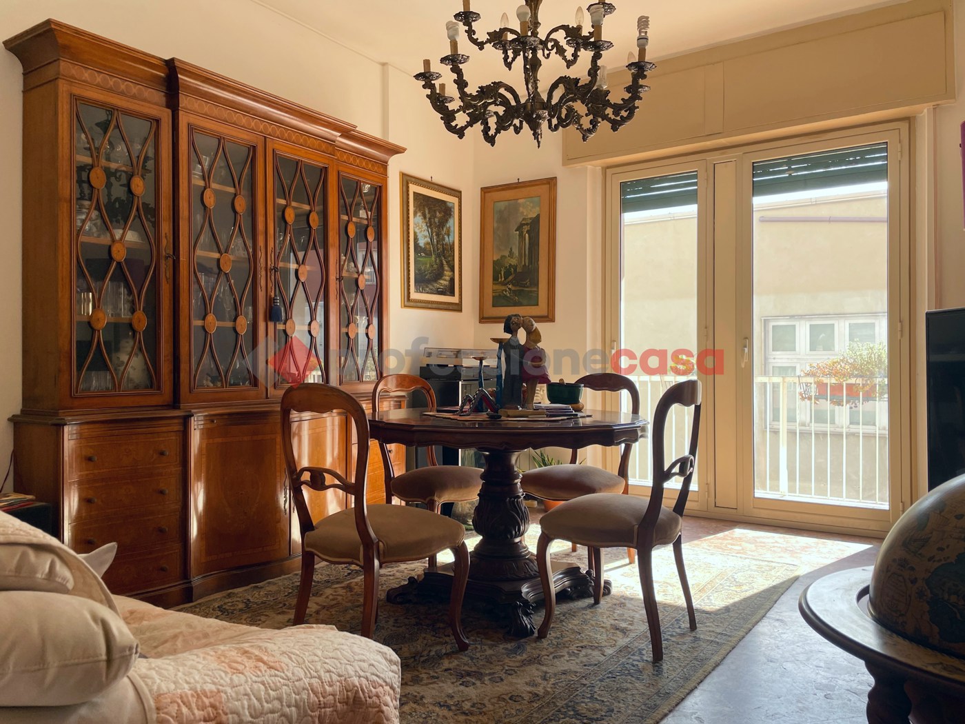 Allingresso ci accoglie un corridoio che disimpegna tutti gli ambienti: un soggiorno luminoso, tre ampie camere, una sala da pranzo adiacente alla funzionale cucina, due bagni e una lavanderia.
