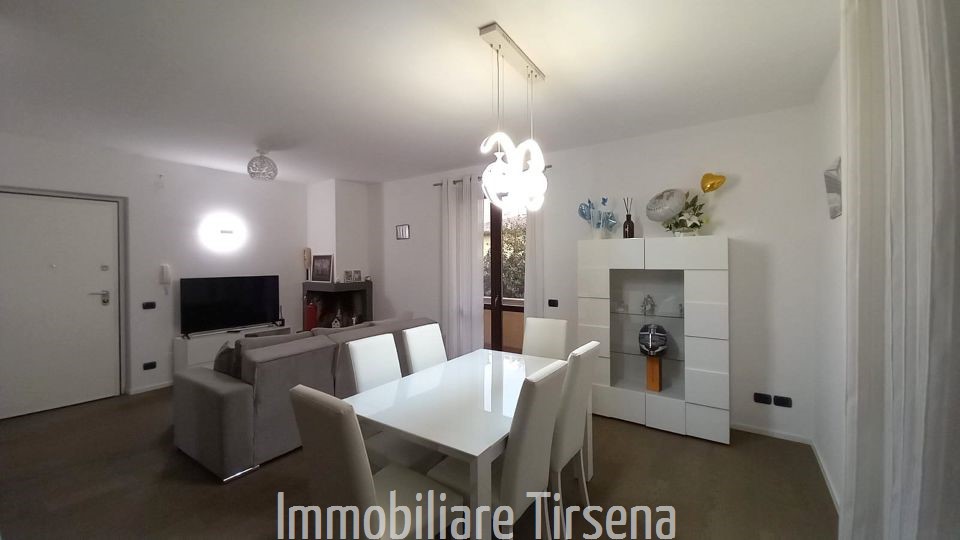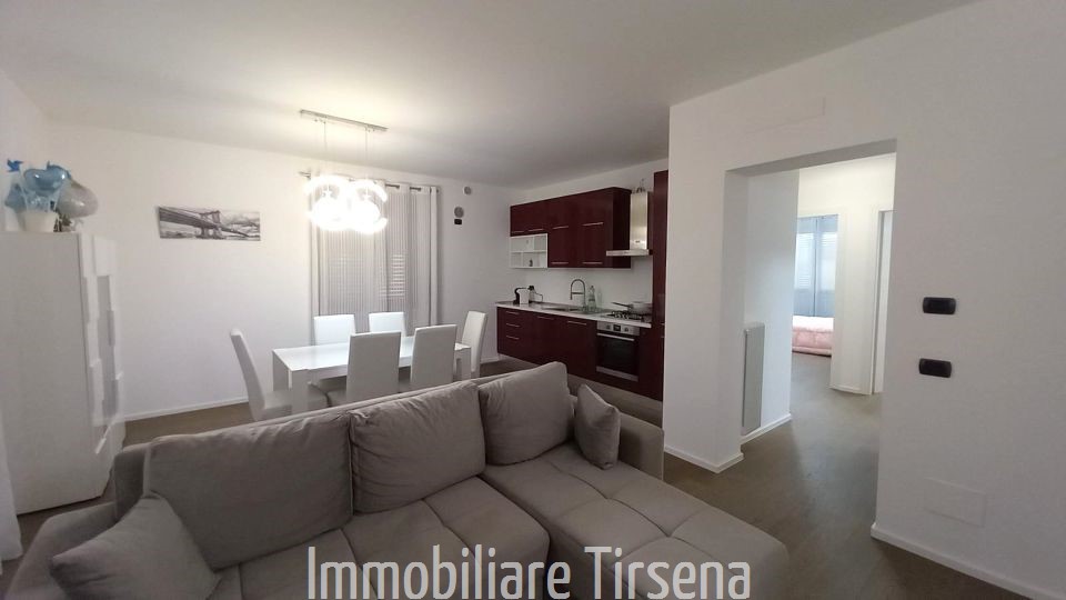 L'appartamento si compone di un soggiorno-cucina con camino, disimpegno, due camere matrimoniali e due bagni.