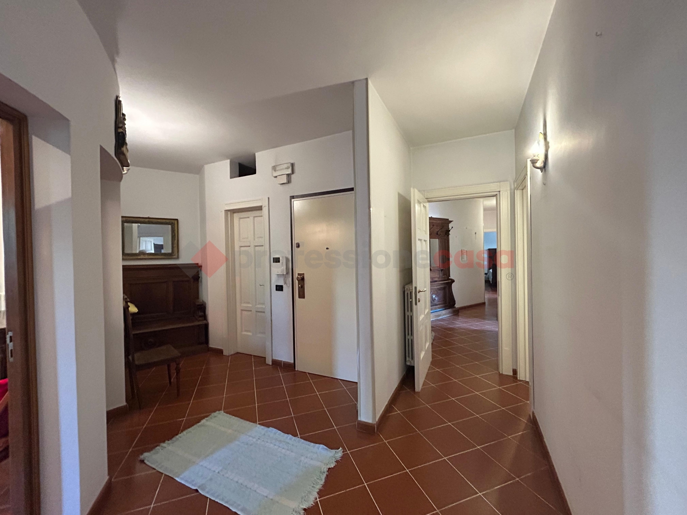 Lingresso principale si apre su un disimpegno che conduce alla zona giorno, composta da una comoda cucina abitabile con piano in muratura, che grazie a un grazioso balconcino affaccia su Viale Matteotti, segue una sala da pranzo con pavimento in parquet e un pratico ripostiglio.