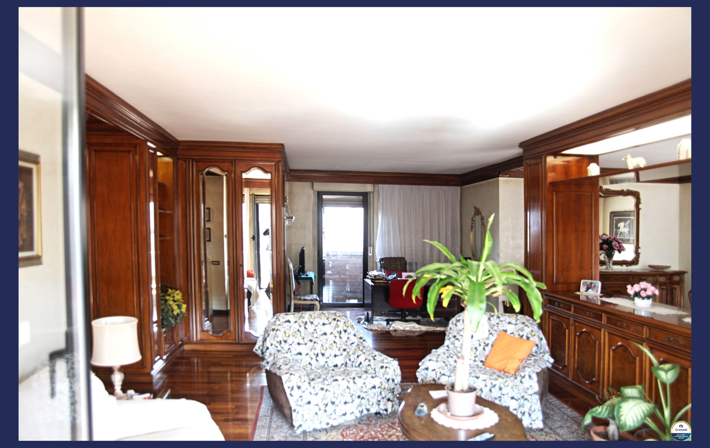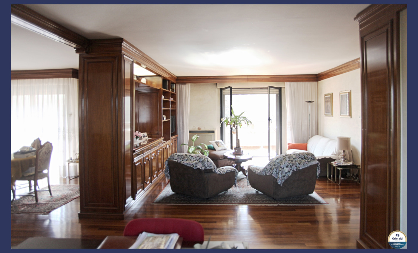 Nella parte centrale dellappartamento e da entrambi i portoncini dingresso, accediamo al grande living (salone triplo) che ha doppio affaccio con 2 balconate ed un balcone, ad una prima camera per gli ospiti con bagno in suite ed una seconda camera da letto.