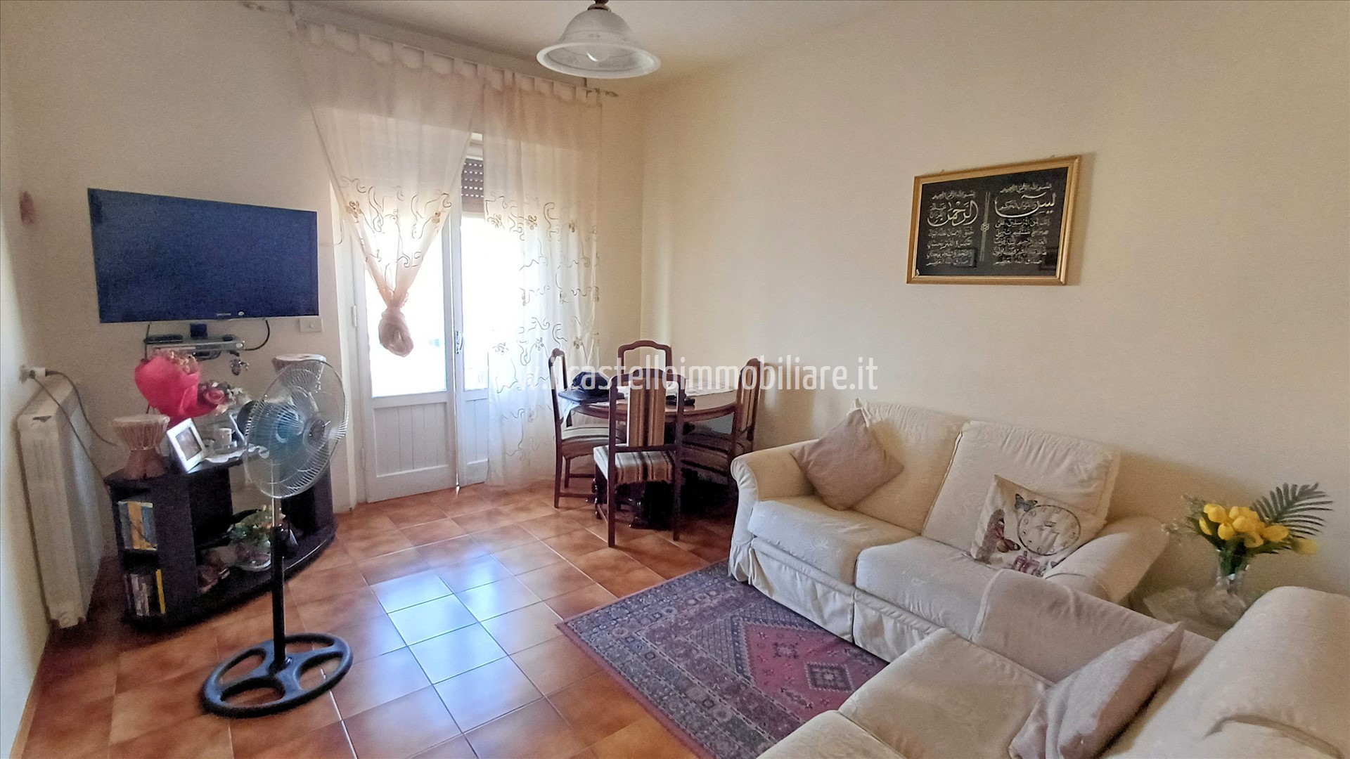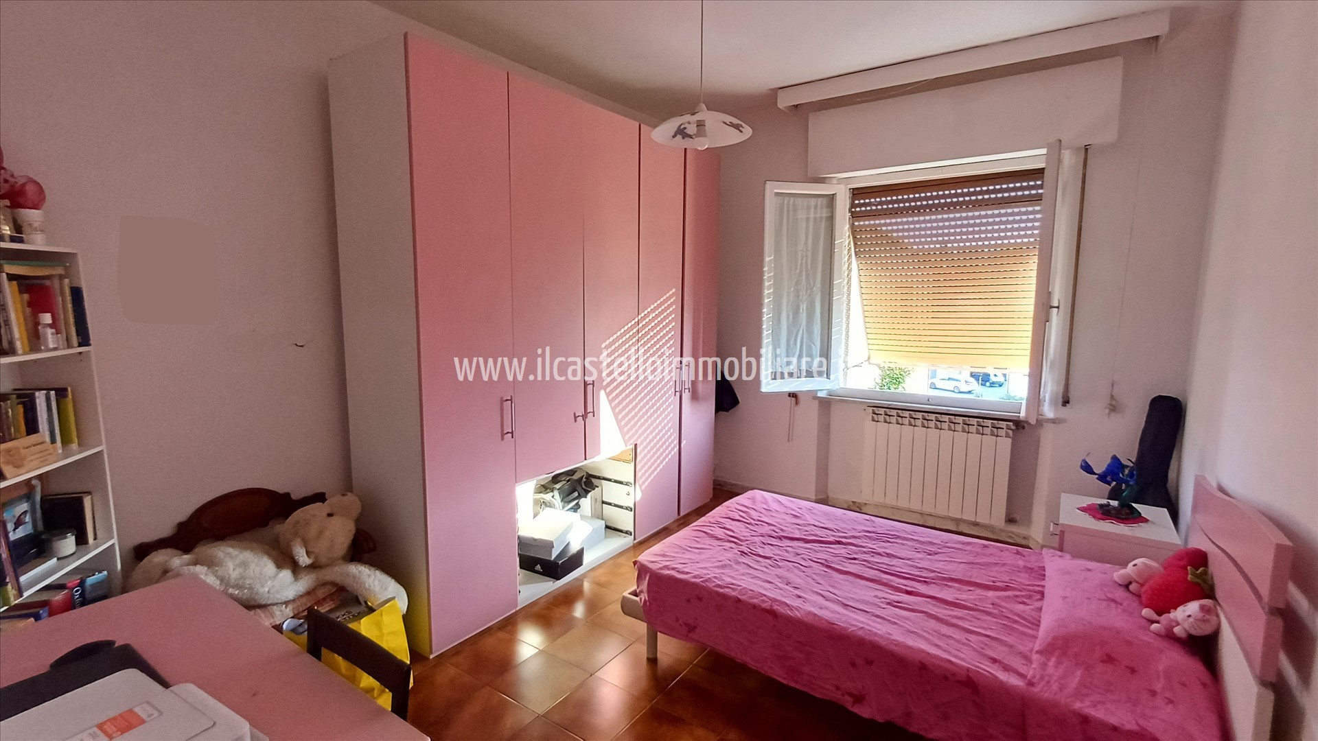 L'appartamento dispone di ingresso, soggiorno / pranzo con balcone, cucinotto, disimpegno, 3 camere (di cui una con balcone) e bagno con vasca.