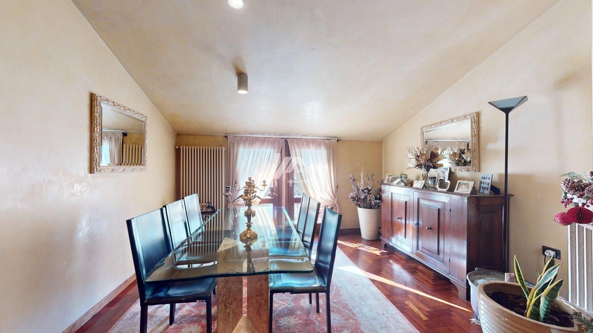 La proprietà nasce dallunione di due unità abitative, offrendo ambienti generosi, luminosi e versatili.