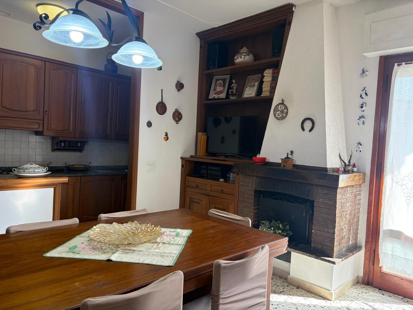 La zona giorno accoglie con eleganza e intimità, dominata da un camino che diventa protagonista di momenti autentici, mentre langolo cottura si integra con naturale armonia, creando un ambiente perfetto per vivere e condividere.