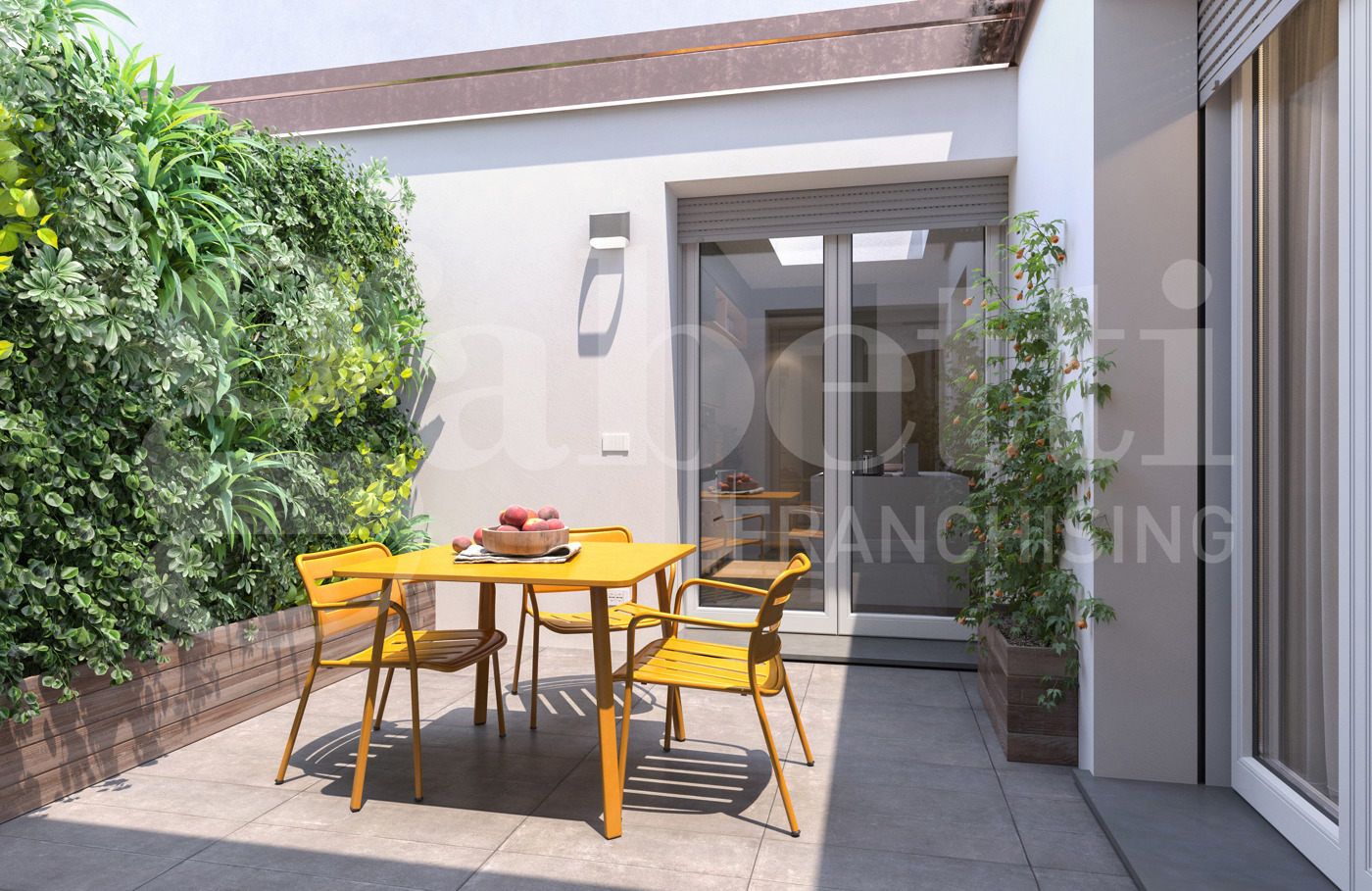 Corte esclusiva interna di 67 mq. Riscaldamento a pavimento con impianto termico autonomo alimentato da pompe di calore aria/acqua interconnesso all'impianto fotovoltaico al servizio di ogni singola unit. Possibilit di personalizzazione interna e scelta finiture.