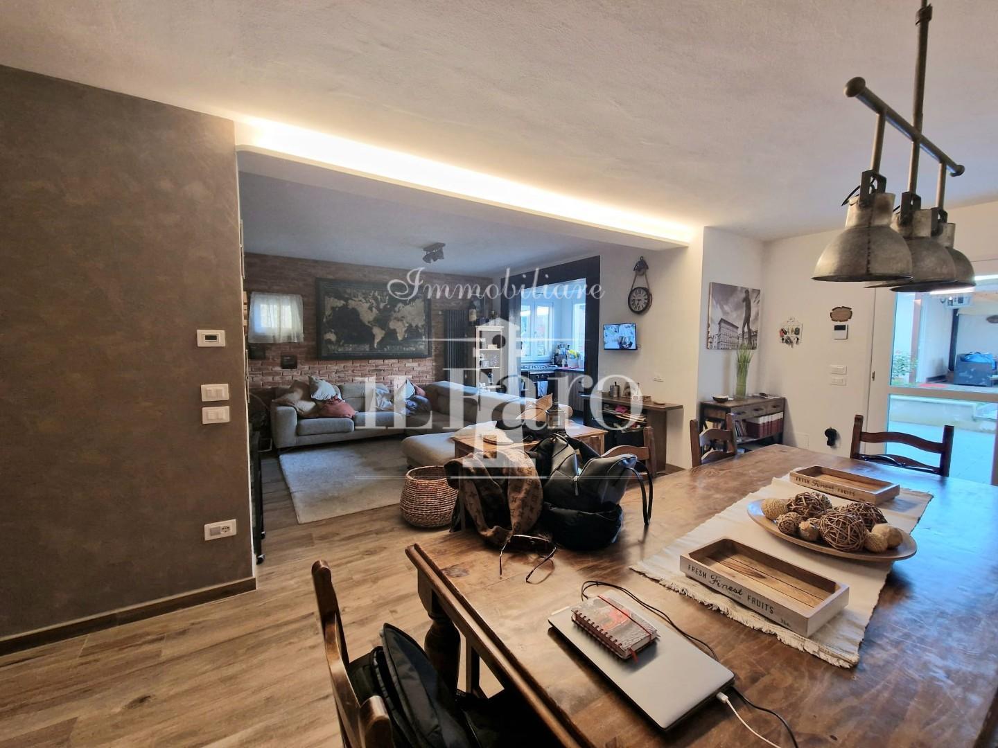 L'appartamento, è stato oggetto di una RECENTE RISTRUTTURAZIONE ed è così composto: L'entrata nella proprietà avviene direttamente dal RESEDE CARRABILE, libero su due lati, che conduce sul lato tergale del fabbricato, dove troviamo lo splendido GIARDINO ESCLUSIVO di 180 mq, sul quale insiste un annesso in muratura completamente ristrutturato.