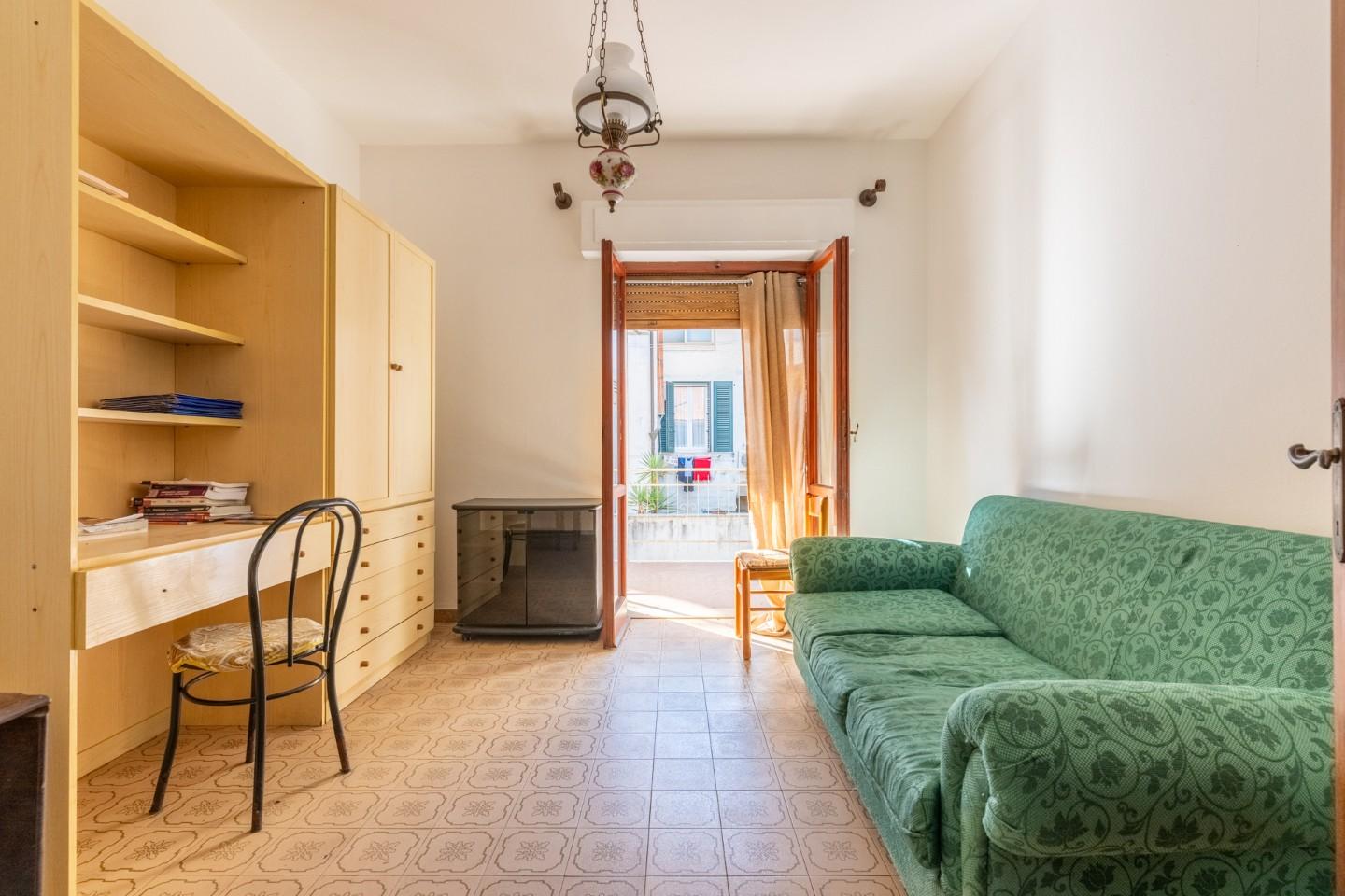 La composizione attuale è di un appartamento di quattro vani, con ampia terrazza, al primo ed ultimo piano, e di garage/magazzino e locali accessori (per circa 70 mq), con accesso ad ampio resede posteriore, al piano terra.