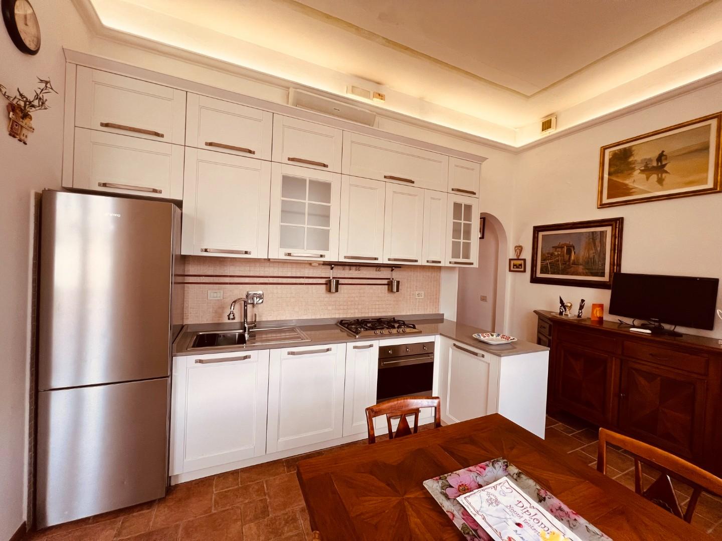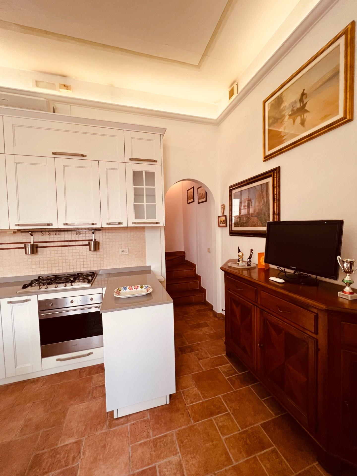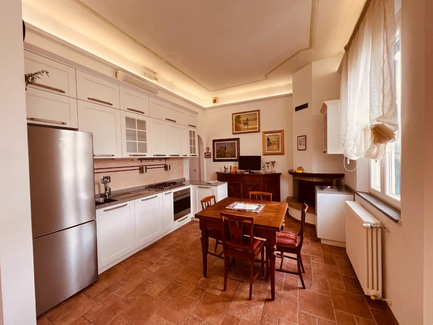 L'appartamento, completamente ristrutturato, è composto da ampia zona giorno con cucina abitabile, camino e zona living, 2 camere matrimoniali e bagno a servizio del piano con piccolo balcone esterno che affaccia sulla corte interna della proprietà. Da zona di passaggio, attraverso una scala in legno si accede al piano superiore dove troviamo un sottotetto, da cui è stata ricavata una terza camera matrimoniale con il suo bagno e vari locali adibiti a ripostiglio.