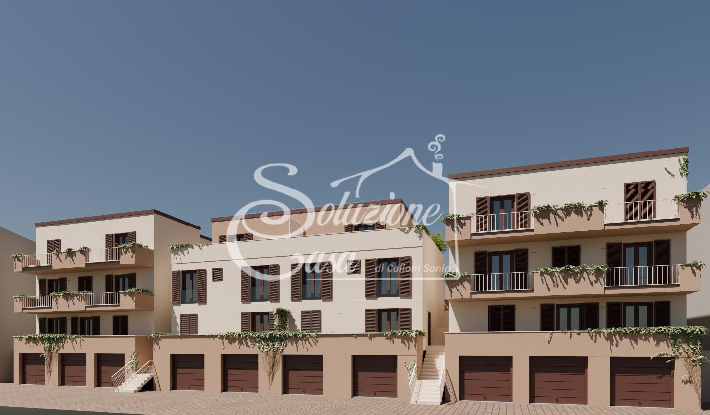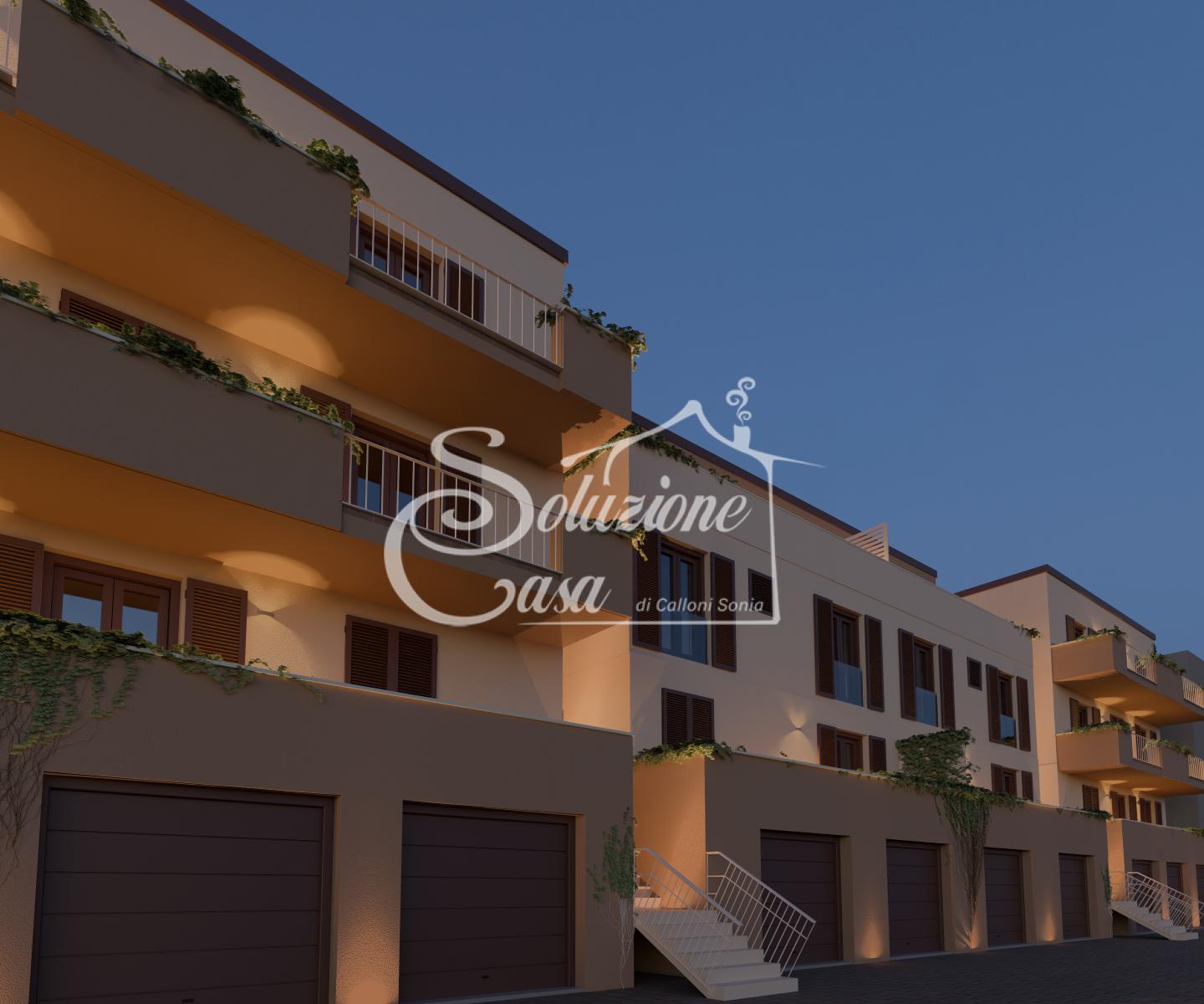 Gli stabili si distribuiscono su tre piani fuori terra, in cui troviamo le quattro tipologie di appartamenti che di seguito di descriviamo: ? Tipologia A: Posti Al primo piano troviamo gli appartamenti di circa 90mq che si sviluppano su un unico piano composti da ingresso con ampio soggiorno con porta finestra per accesso al terrazzo, cucina, ripostiglio, due camere matrimoniali con accesso al balcone, bagno; completano la proprietà garage con luce ed acqua di circa 50mq collegato direttamente dall'appartamento da scala esterna nel retro del fabbricato, giardino esclusivo.