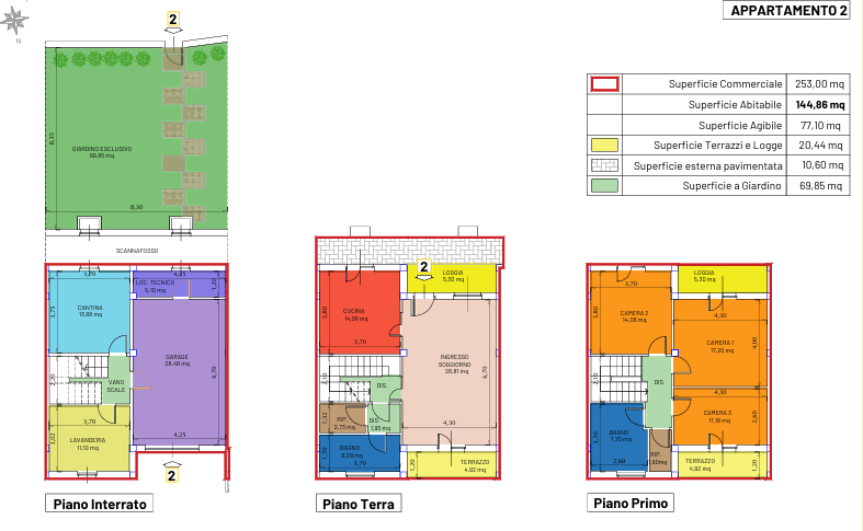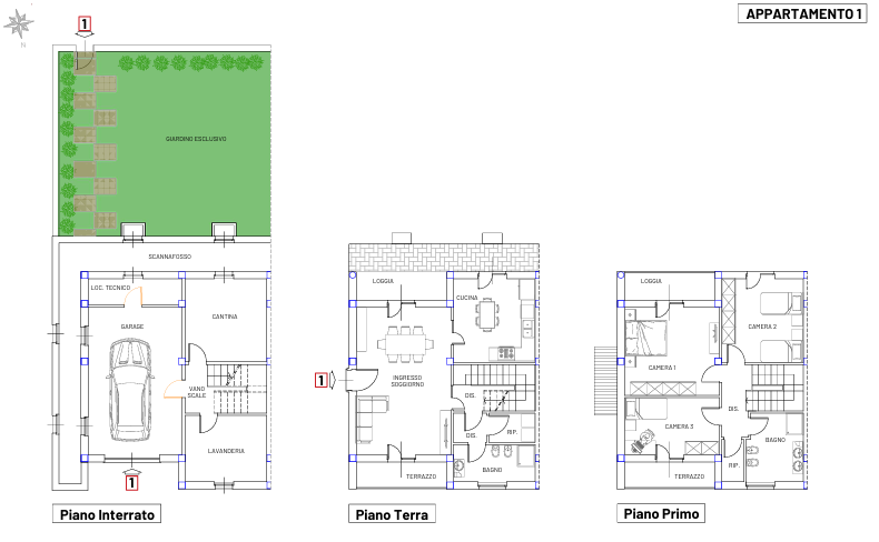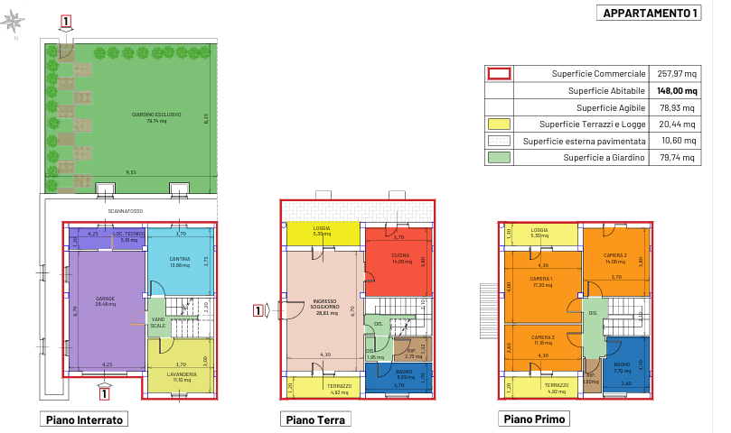 La superficie lorda è di circa 160 mq con poche variazioni da un appartamento all'altro, distribuita tra piano semiinterrato e 1°piano, tanto che il prezzo vendita, ancora da ben definire, è quasi lo stesso per tutti e quattro le abitazioni.