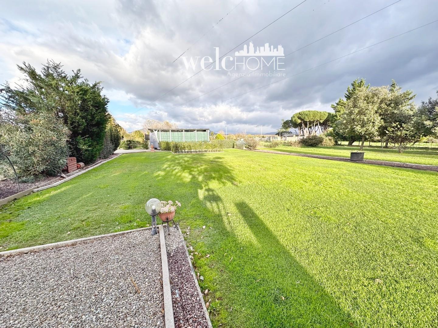 Il giardino è curatissimo, tenuto in gran parte a prato all'inglese e comprende un annesso di circa m. 18 in parte chiuso e in parte a tettoia con barbecue, 8 posti auto, tra cui tre più grandi (anche per camper). Immobile ideale per chi ama contesti nel verde ed ampi spazi esterni.