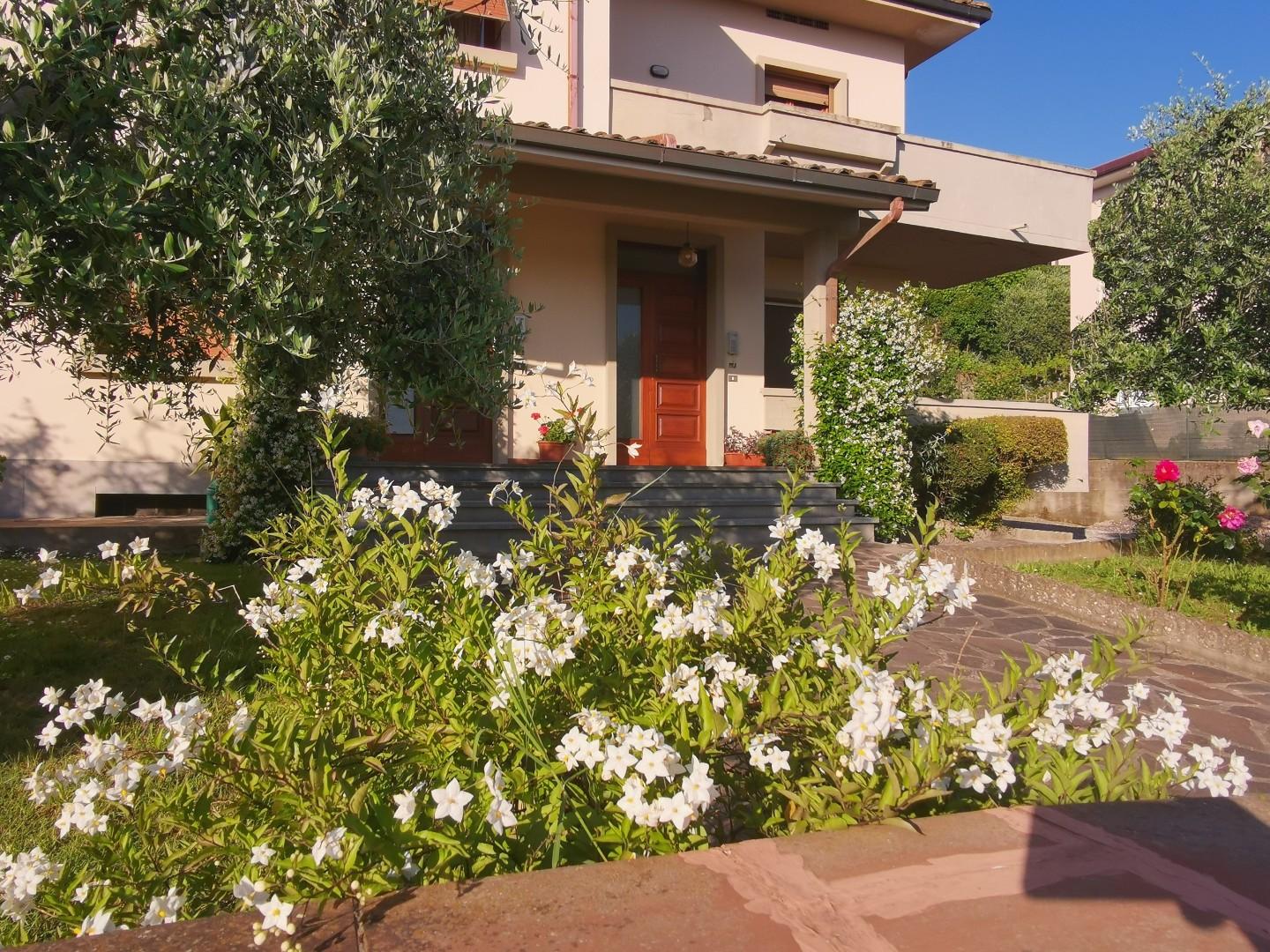 ***.*******.** 974 - Rif. 953 - Pressi di Fucecchio, in vendita intero primo piano di villetta bifamiliare con ampio spazio circostante a giardino e piazzale/posti auto. L'immobile ha accesso indipendente da giardino anteriore e scale interne, si sviluppa su una superficie di 160mq ed è composta da ingresso, salotto, tinello, cucina abitabile e cucinotto con accesso al balcone, disimpegno zona notte, quattro camere da letto matrimoniali, ripostiglio e due bagni con finestra oltre a due terrazzi, ampio e comodo spazio esterno circostante e 45mq di vano interrato accessorio con accesso sia carrabile che tramite continuazione delle scale interne, così come anche l'intera soffitta praticabile di 135mq circa. Contatta l'inserzionista