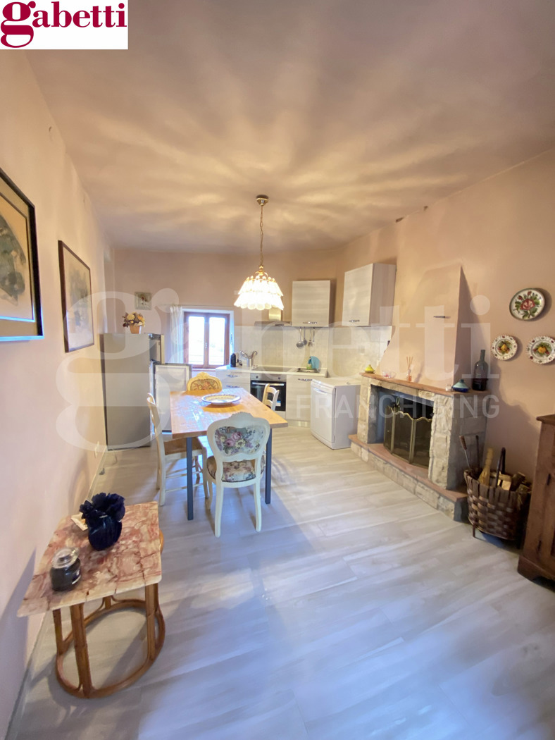 Appartamento piano primo: trilocale di 80 mq catastali libero su due lati composto da soggiorno con angolo cottura e camino, due camere da letto e bagno finestrato.