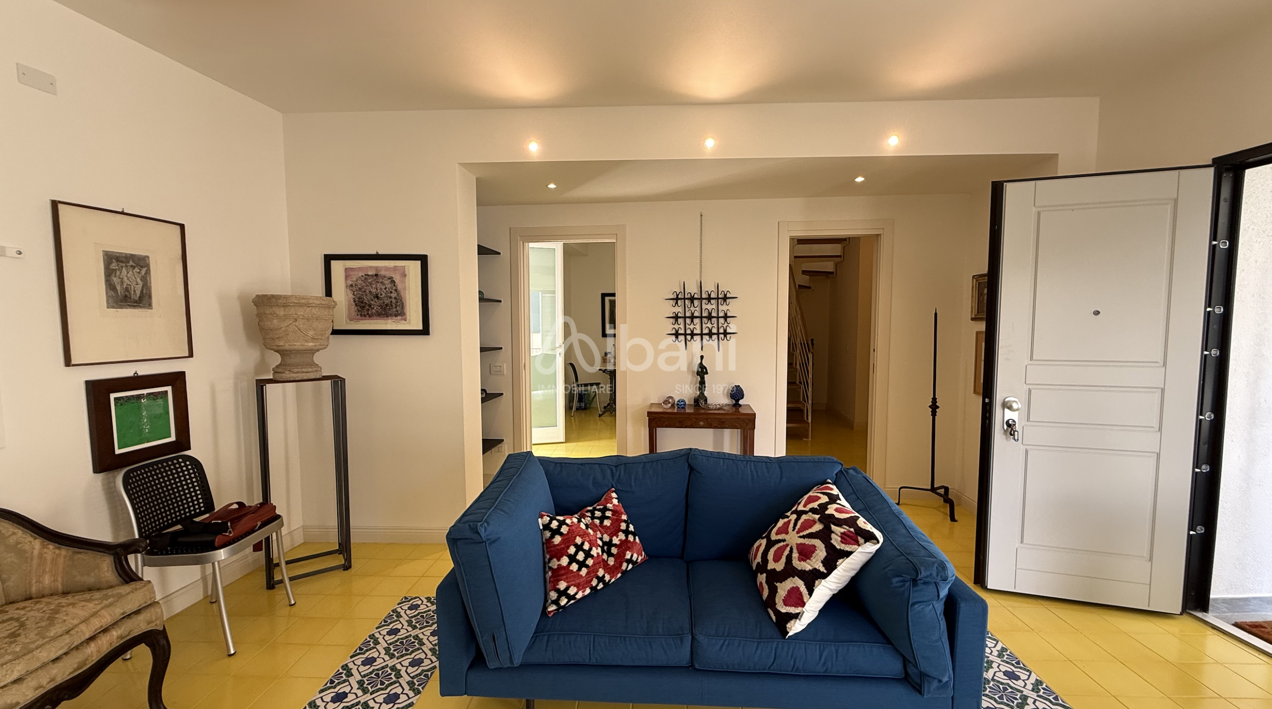 La proprietà è composta da: Ampio salone con accesso a una grande terrazza panoramica affacciata sul mare, tre camere da letto, uno studio con accesso a due terrazze, cucina abitabile con estesa zona esterna/giardino ideale per momenti conviviali, ulteriore terrazzo, tre servizi a disposizione dei vari ambienti.
