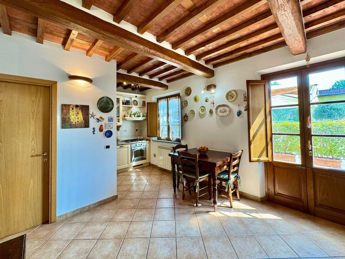 Le finiture sono di ottima qualità e perfettamente in linea con il gusto rustico della campagna lucchese: travi a vista, pavimento in cotto, infissi in legno con vetrocamera.
