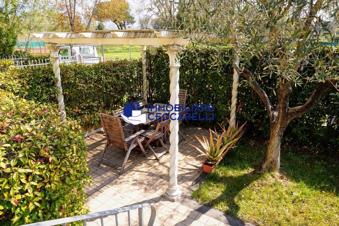 La proprietà è ulteriormente valorizzata da un grazioso giardino privato, impreziosito da un elegante gazebo, perfetto per pranzi allaperto e momenti di relax.