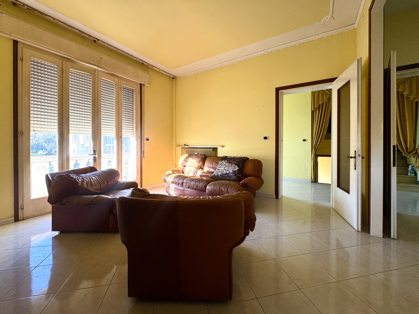 Allesterno, un ampio terrazzo offre uno spazio ideale per momenti di relax, mentre un garage indipendente e il terreno che circonda ledificio completano la propriet, garantendo la possibilit di realizzare un grande giardino o di valutare ulteriori sviluppi.