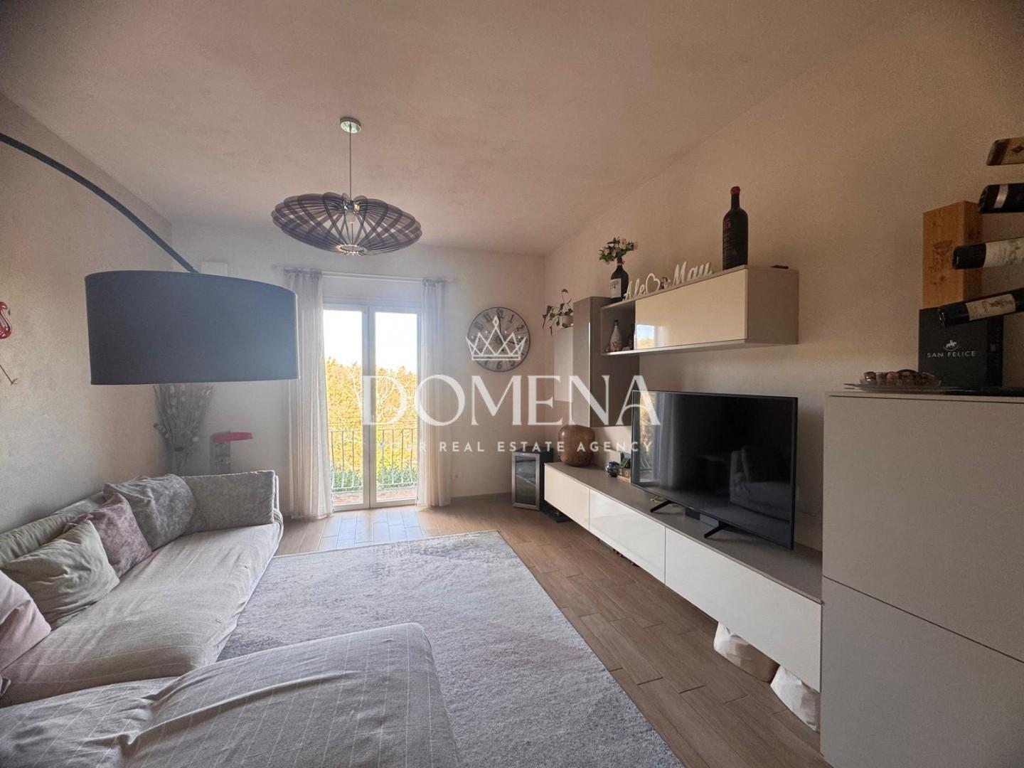 L'appartamento è composto da una zona living ampia e luminosa con terrazzo e cucina a vista con porta finestra affacciata sul resede esclusivo, la zona notte è composta da due ampie camere di cui una con bagno privato finestrato e vista panoramica sulla vallata, il secondo bagno è completo di doccia e poi abbiamo una zona studio che potrebbe essere trasformata anche nella terza camera con comodo ripostiglio.