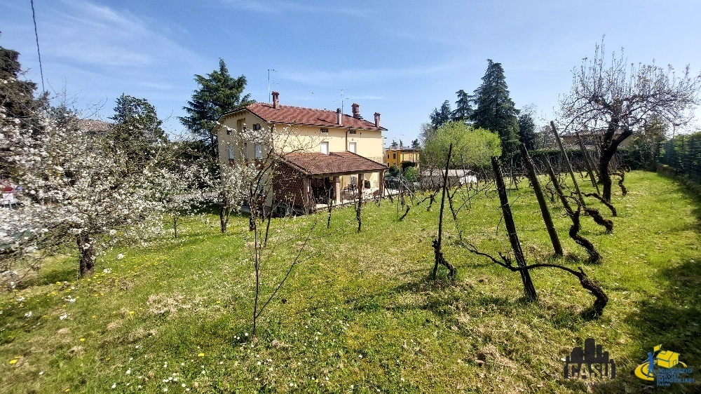 SALA BAGANZA vendesi in casa bifamiliare anni '60, appartamento composto da ingresso, soggiorno, cucina, sala pranzo, 3 camere, doppi servizi, balconi, portico, terrazzo, ampie cantine, giardino 830 mq, box auto esterno.