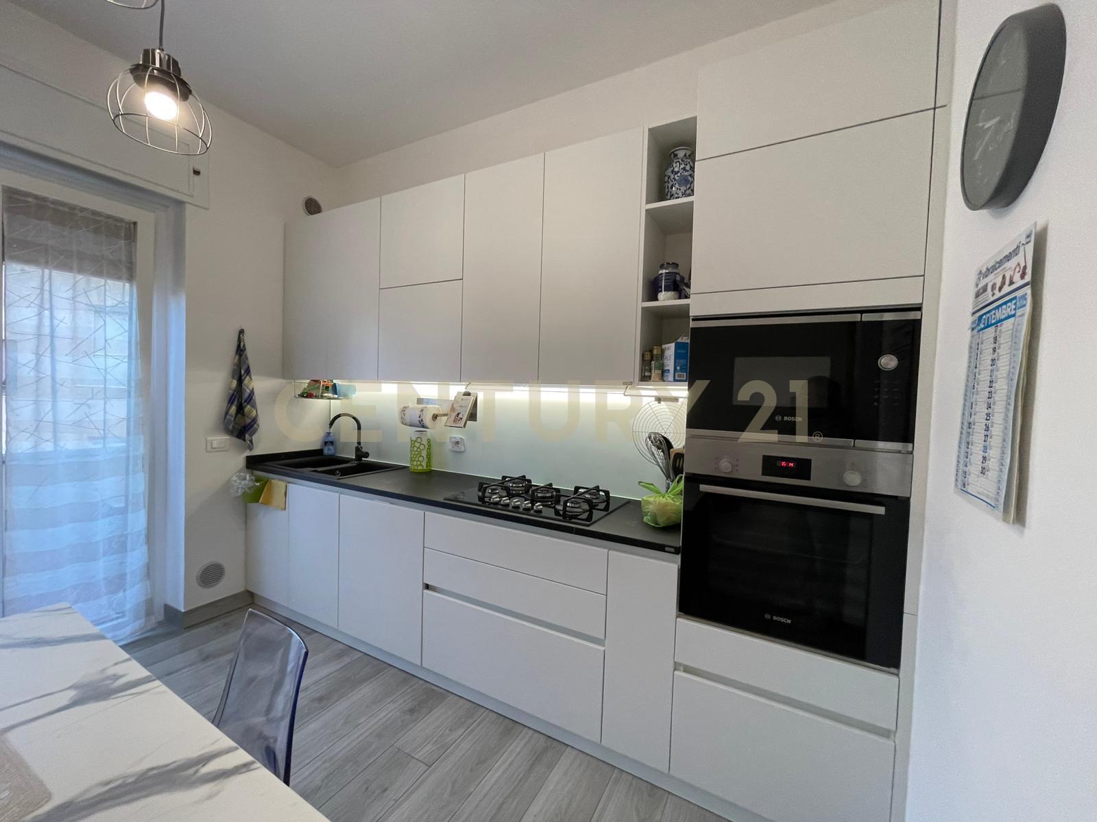 Lappartamento si compone di: 90 mq Ingresso accogliente Ampio soggiorno con accesso a un terrazzo vivibile Cucina abitabile con secondo terrazzo attrezzato Disimpegno notte Due spaziose camere matrimoniali Bagno finestrato con doccia Limmobile è climatizzato e gode di tripla esposizione, che assicura unottima luminosità durante tutto larco della giornata.