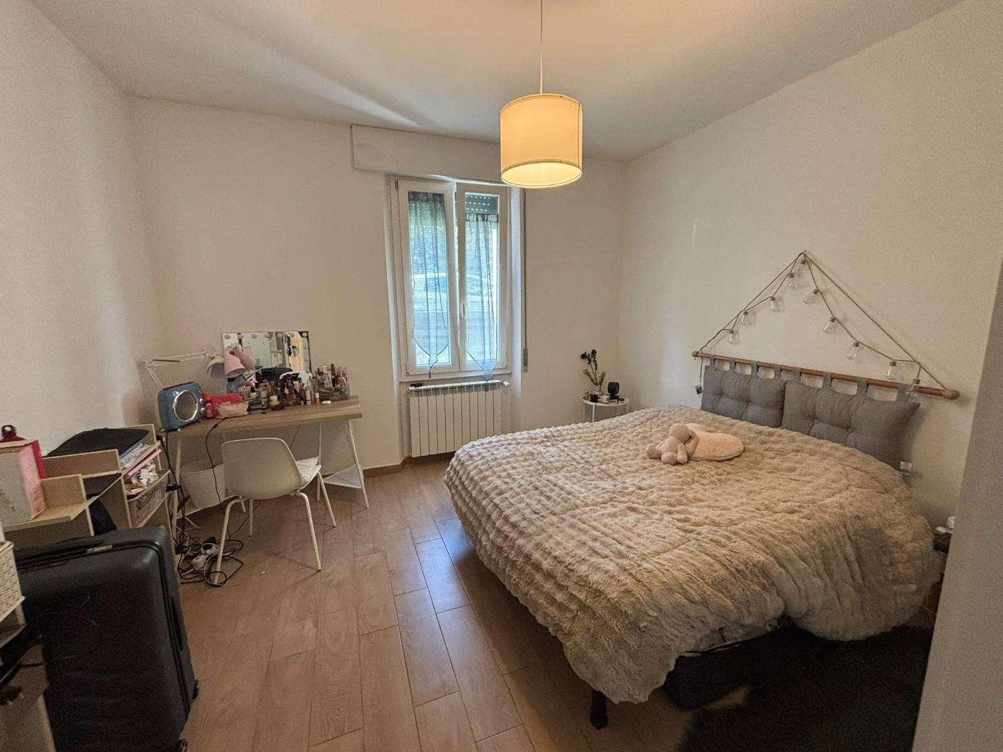L'appartamento residenziale è completamente ristrutturato e composto da soggiorno con zona cottura, due ampi disimpegni, due camere e bagno.