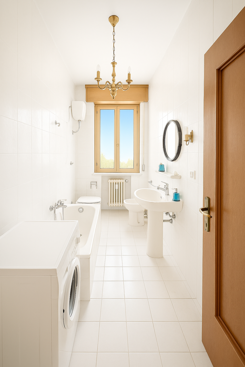 Completa la zona interna un bagno con finestra e vasca e un comodo ripostiglio.