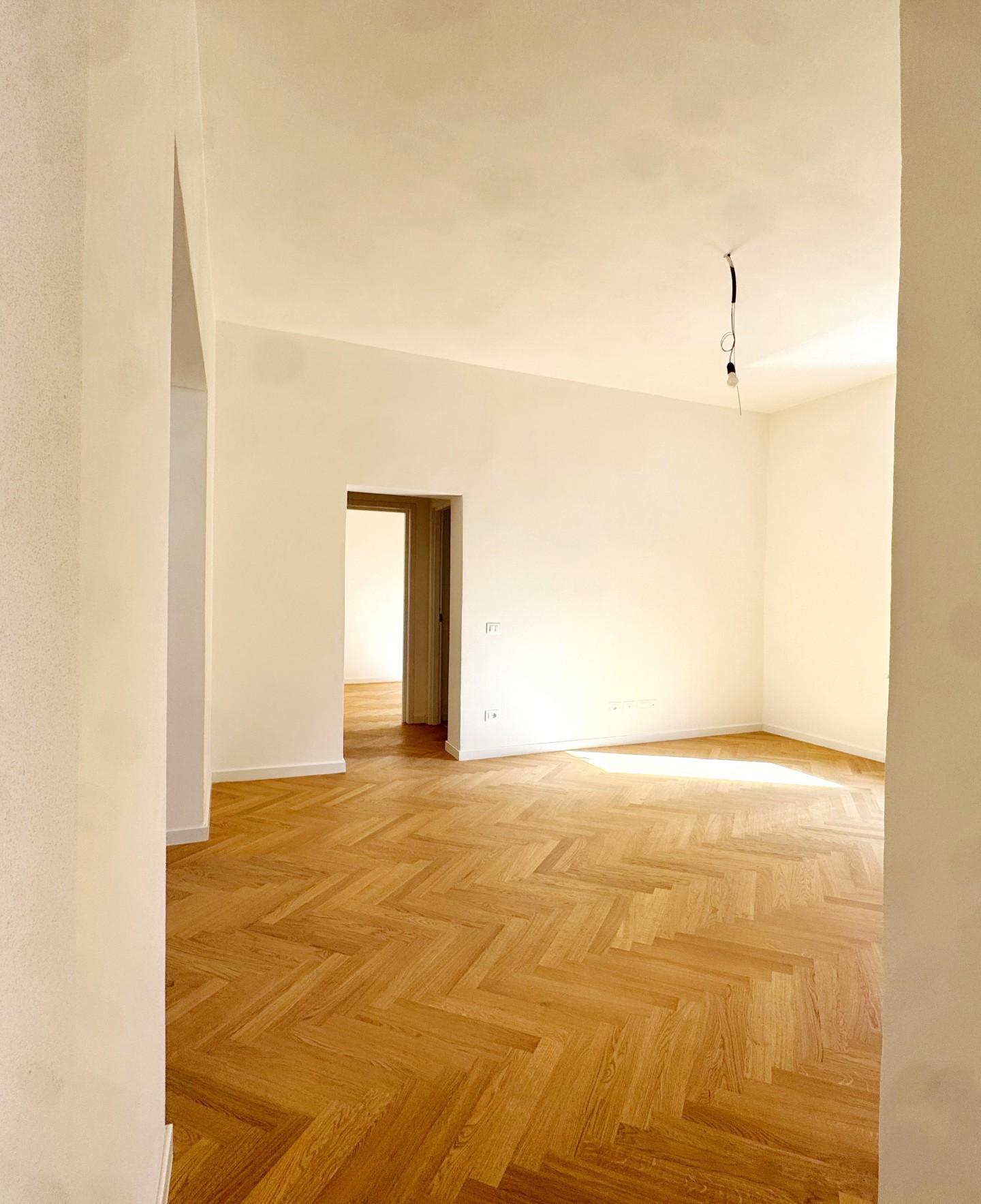 Le camere sono 3, due matrimoniali di cui una con bagno e una con guardaroba e una doppia che si trova attigua all'ingresso che per la posizione potrebbe essere usata anche come studio, sempre vicino all'ingresso troviamo il bagno principale e un ripostiglio.