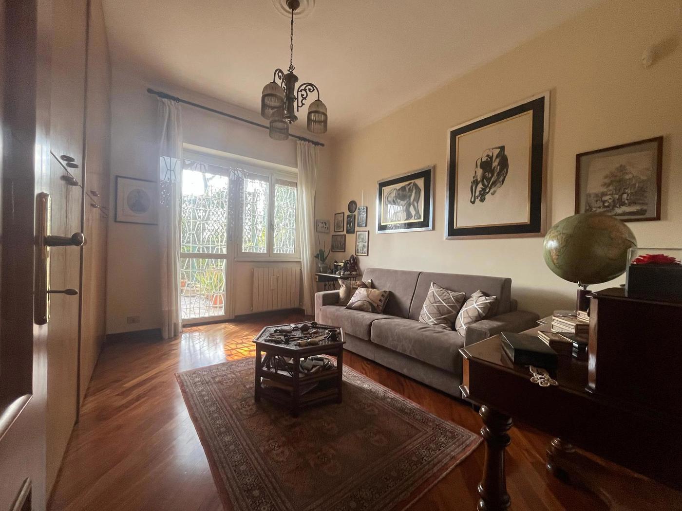 Limmobile gode di una tripla esposizione, che garantisce una straordinaria luminosit durante tutto larco della giornata, ed circondato da un ampio giardino privato di circa 600 mq, completo di impianto di irrigazione automatica sia per il giardino che per il terrazzo.