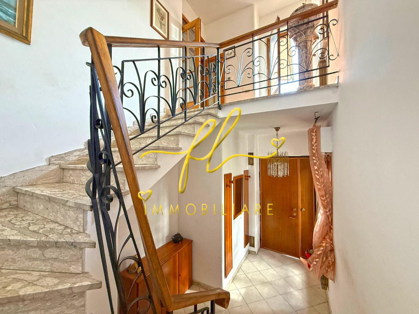 La proprietà si distingue per gli ambienti ampi, ariosi e ben distribuiti: un grande salone doppio con camino rappresenta il cuore della casa e si apre su uno splendido terrazzo angolare con vista mare, perfetto per pranzi allaperto e momenti di relax.